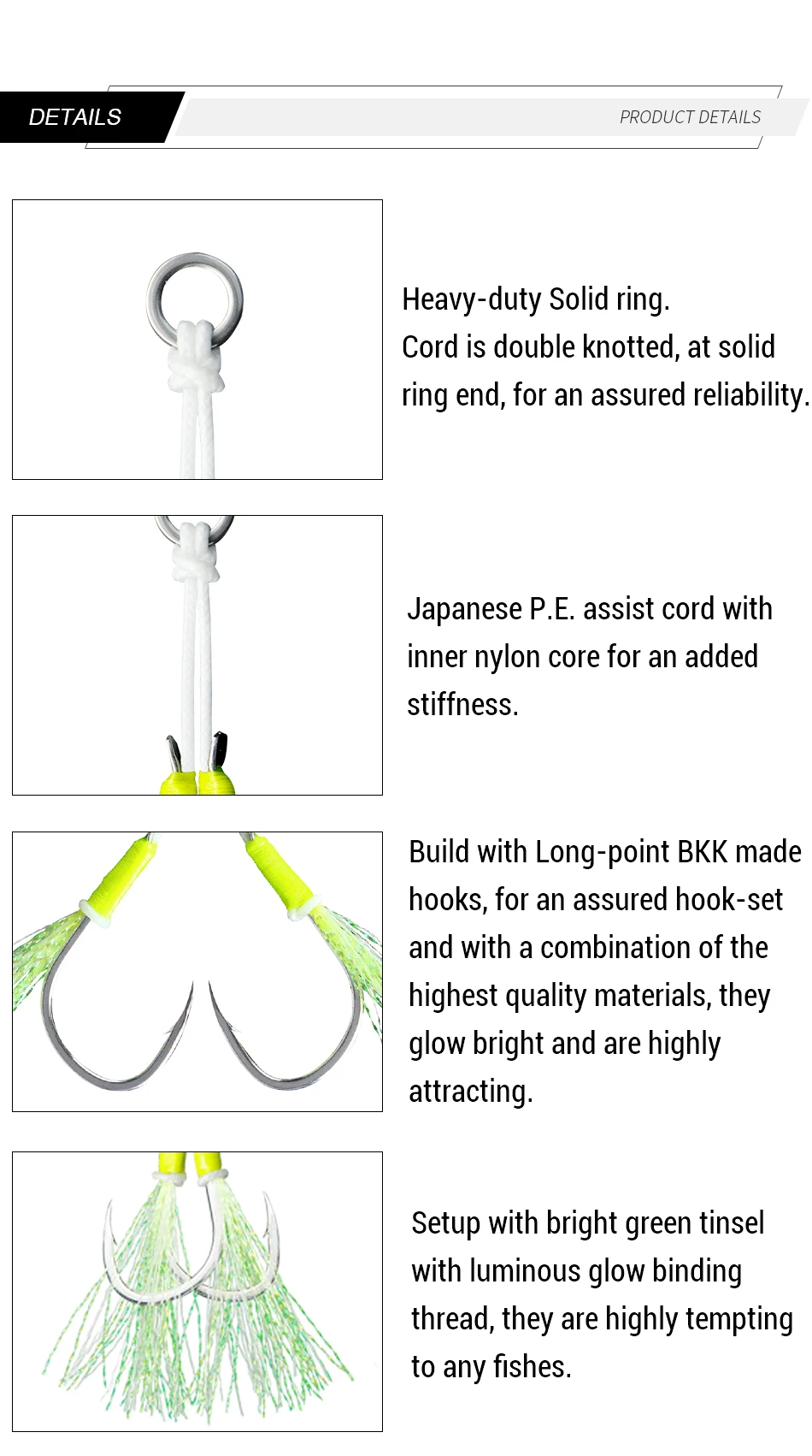 Hilo de nailon integrado en una línea de asistencia, para aumentar la rectitud elástica que engancha fácilmente a los peces y sin rodar al hundirse.Gancho, seleccionamos uno especial de jigging con punta afilada y pequeño diámetro de línea, que tiene una excelente penetración.Siente la alegría de pescar con anzuelos JK