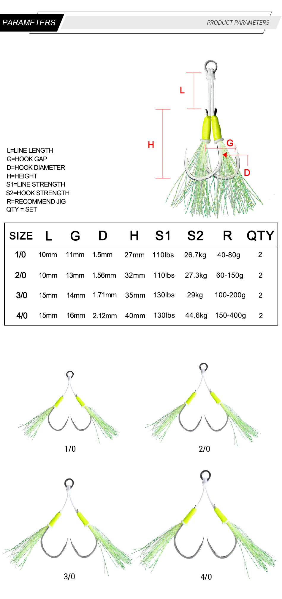 Anzuelo de Jigging lento JK 3/0 4/0 5/0 6/0 anzuelo de plantilla de Metal con revestimiento antioxidante anzuelo de pesca de agua salada doble