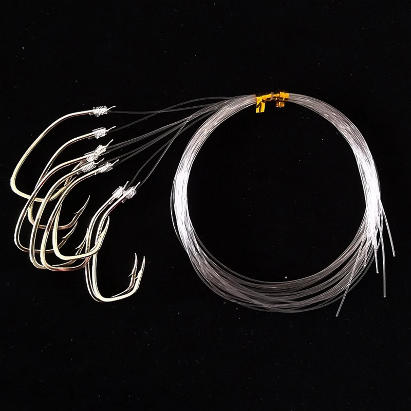 Gancho de lubina atado a mano, subhilo de nailon para barco marino, depósito de pesca, accesorios de equipo de pesca grande, 10 pares/bolsa