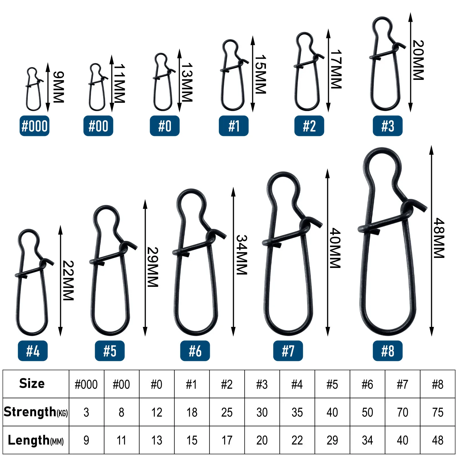 Ideal para poner aparejos, esparcidores y más en su línea de pesca. Tamaño del #00 al #8. Fuerza de 8KG a 75KG. CANTIDAD: 50/100 piezas