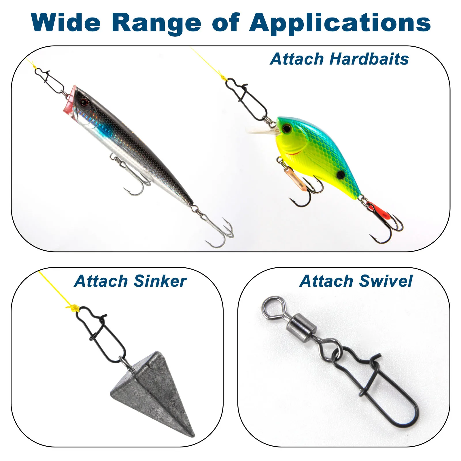 Los eslabones giratorios Duo Lock son fáciles de abrir y cerrar. Puede cambiar los señuelos y las plataformas de forma rápida y fácil para una experiencia de pesca más interesante.