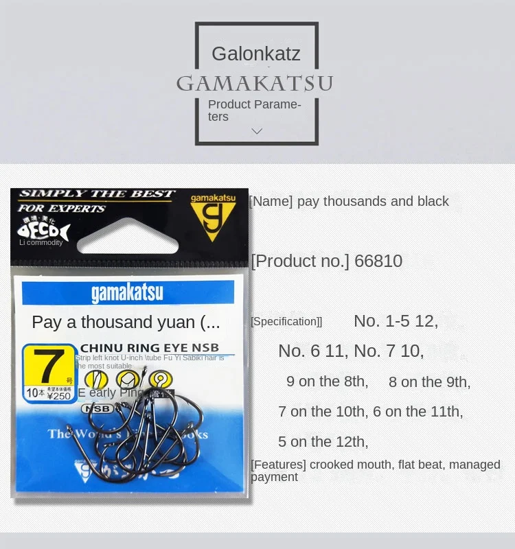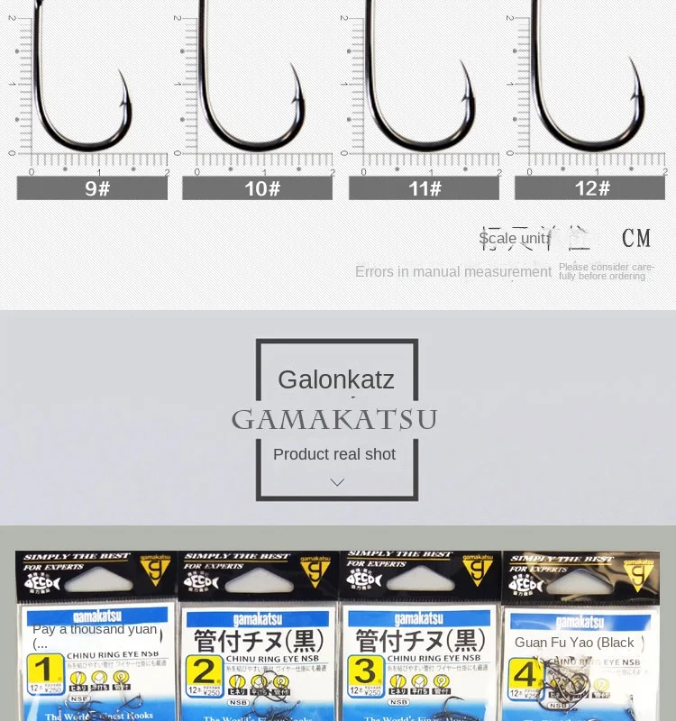 Gancho de pesca de carpa para lubina, 100% Original de materiales japoneses, anillo de tubo de Gama Gamakatsu importado, negro
