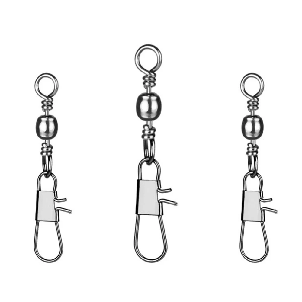 Gancho de pesca giratorio de acero inoxidable, Conector de señuelo de pesca, Pin de rodamiento con broche giratorio, accesorios de aparejos de anzuelo, 50 piezas