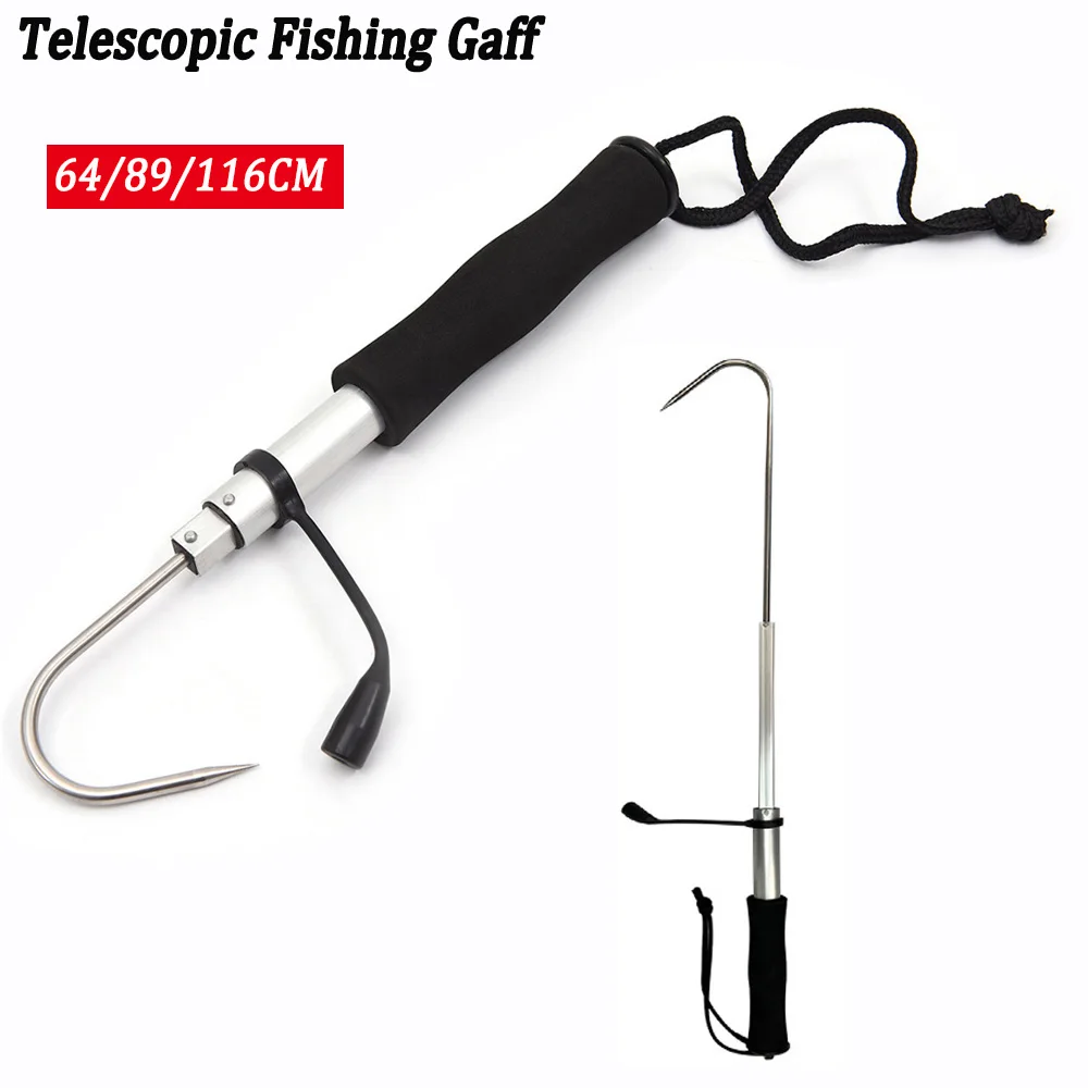 64/89/116cm retráctil Fish Gaff profesional telescópico hielo mar pesca lanza gancho pinza aparejos de pesca de acero inoxidable