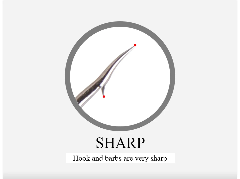 Gancho de púas afiladas de acero de alto carbono, aparejos de pesca de color plateado, 8 unids/pack