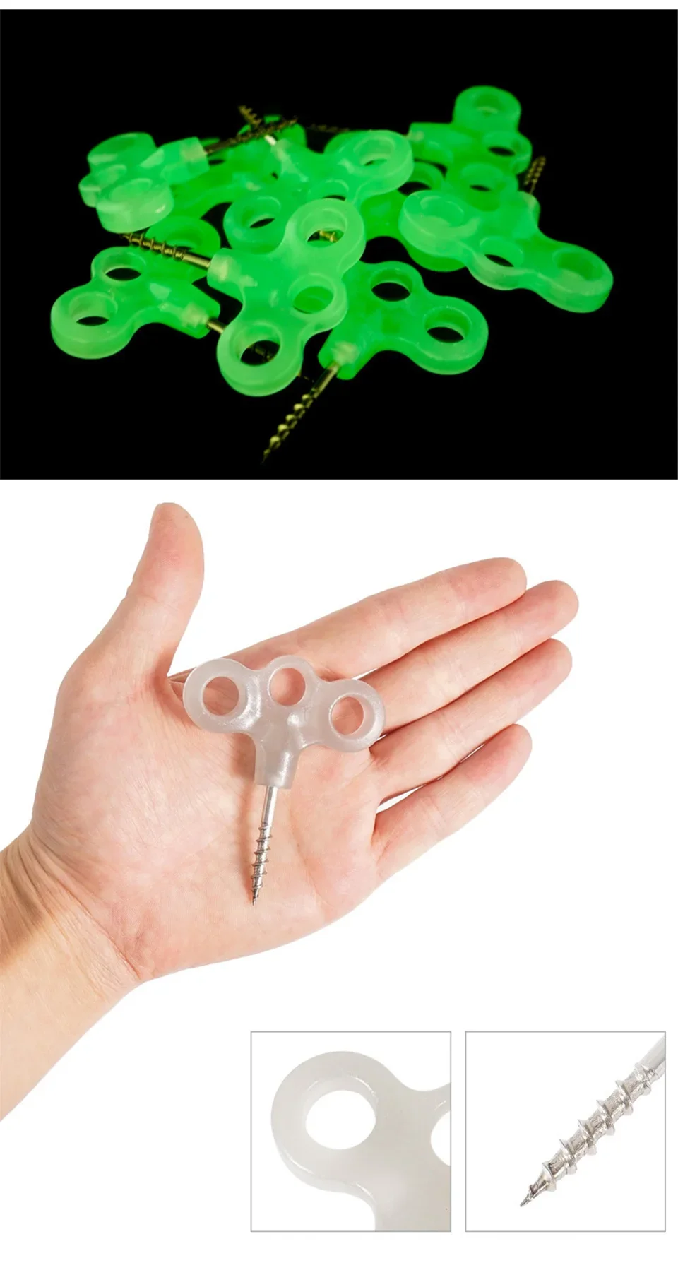 Gancho de punta de tornillo, hebilla de cuerda para senderismo, Camping, Pin de tierra, clavijas luminosas para tienda, accesorios para equipos de viaje al aire libre, 5 uds.
