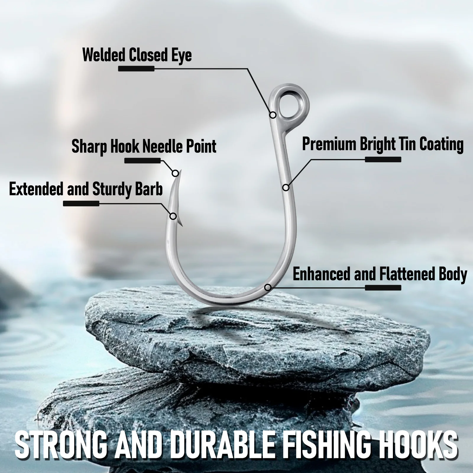 RELIABLE AND DURABLE: The well-polished hook needle point has more penetrating power and can easily pierce the prey. Surface of the hook is covered with bright tin to further improve corrosion resistance, making it last longer.