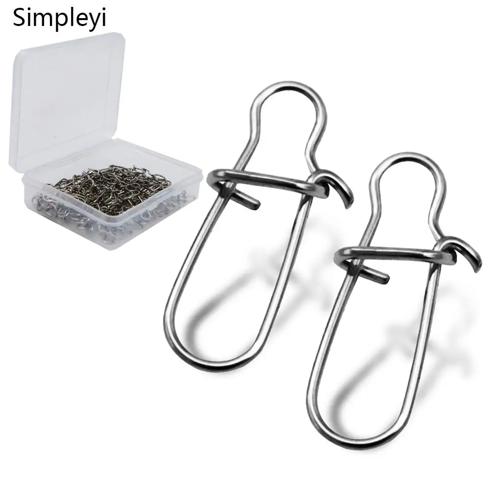 50-100 unids/caja gancho Snap Pin de acero inoxidable barril de pesca gancho de seguridad señuelo accesorios conector Snap herramienta de pesca