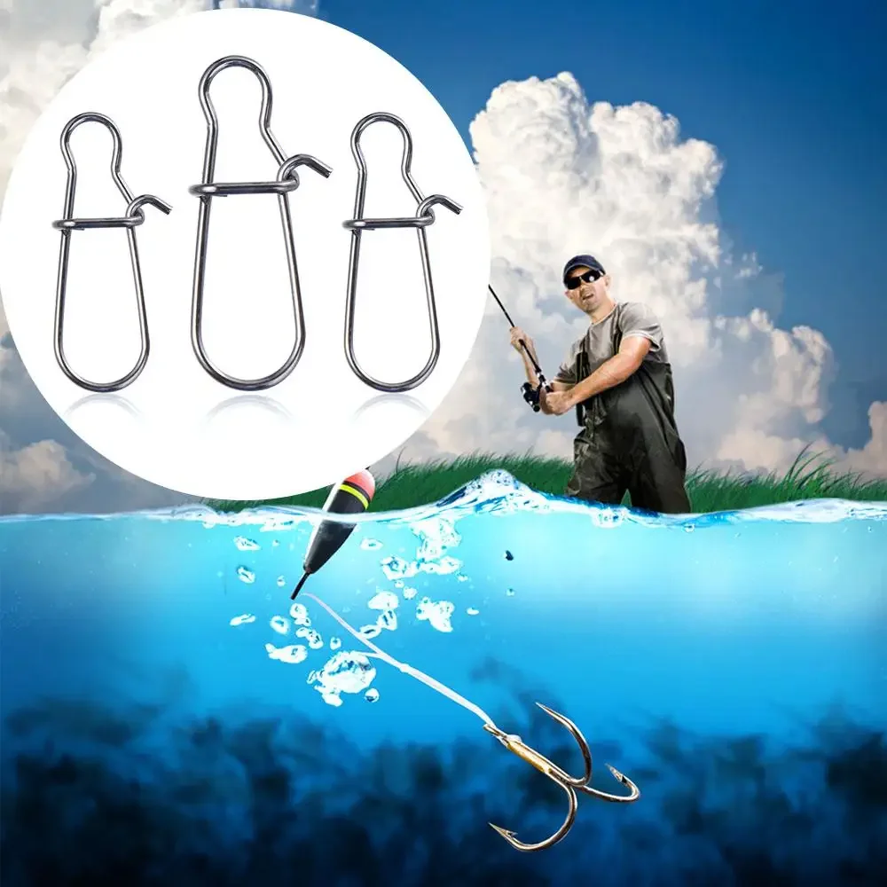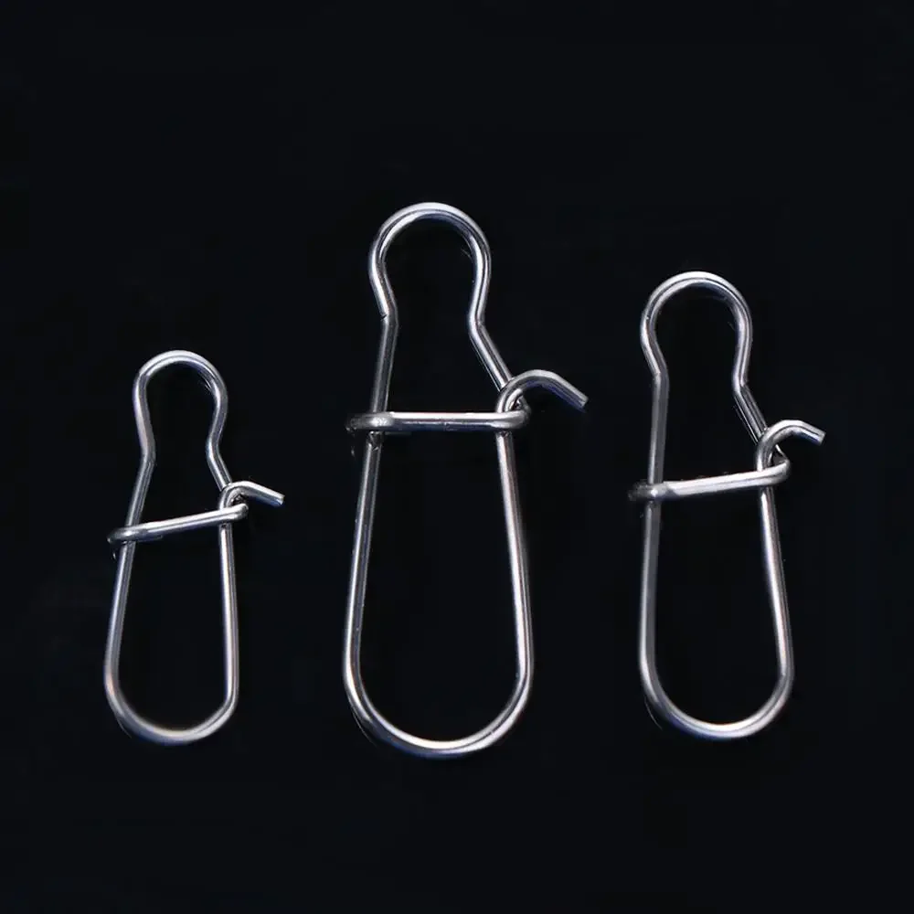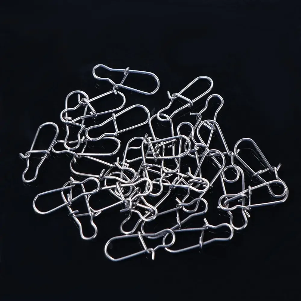 Gancho de seguridad giratorio de barril de Pesca de acero inoxidable, enganchado a presión, 50 piezas, accesorios de señuelo, conector