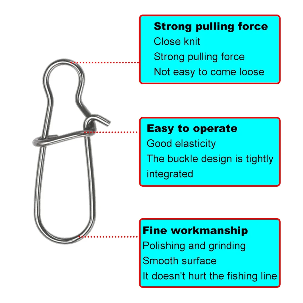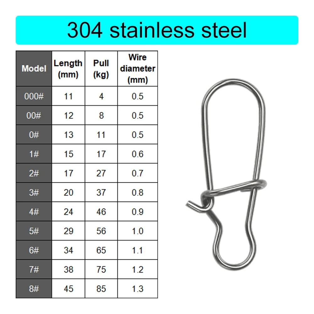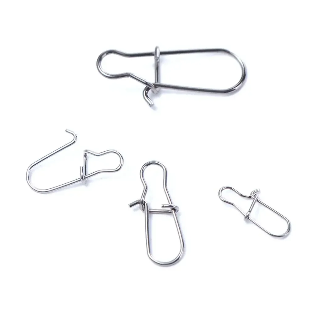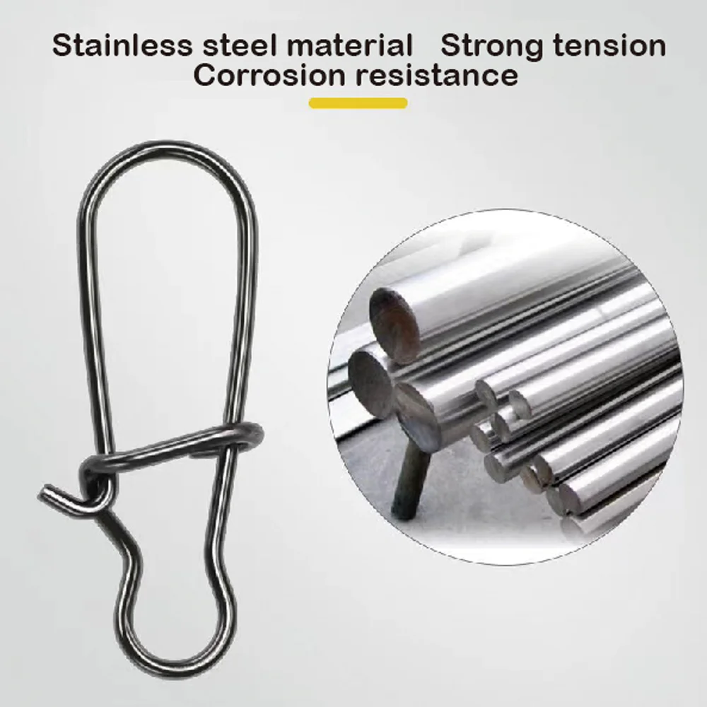 Gancho de seguridad giratorio de barril de Pesca de acero inoxidable, enganchado a presión, 50 piezas, accesorios de señuelo, conector