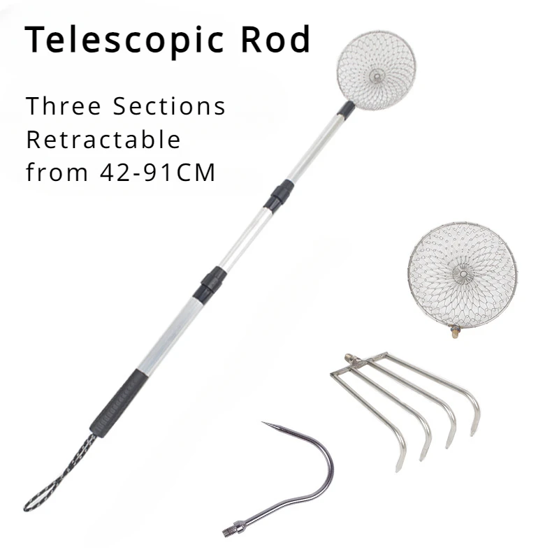 Gancho telescópico retráctil para pala, cuchara para hielo, rastrillo de concha de playa de acero inoxidable, aparejos de pesca de arena, colador, suministros de herramientas