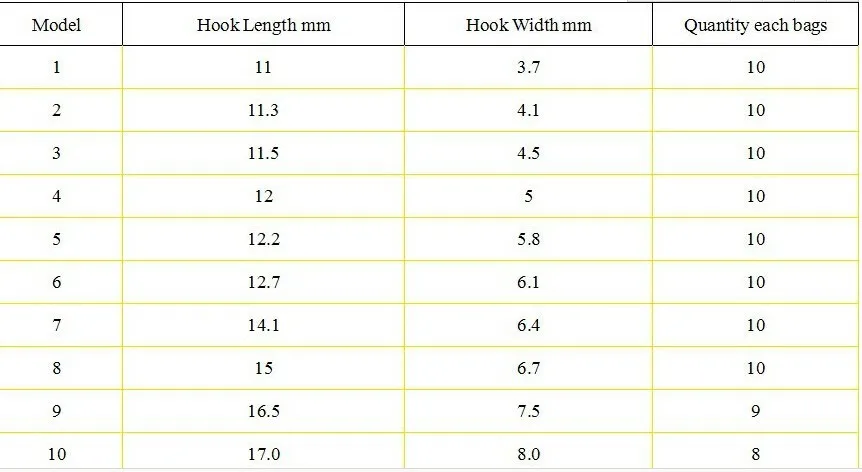 Talla 1#-9# Bolsa de 10 piezas