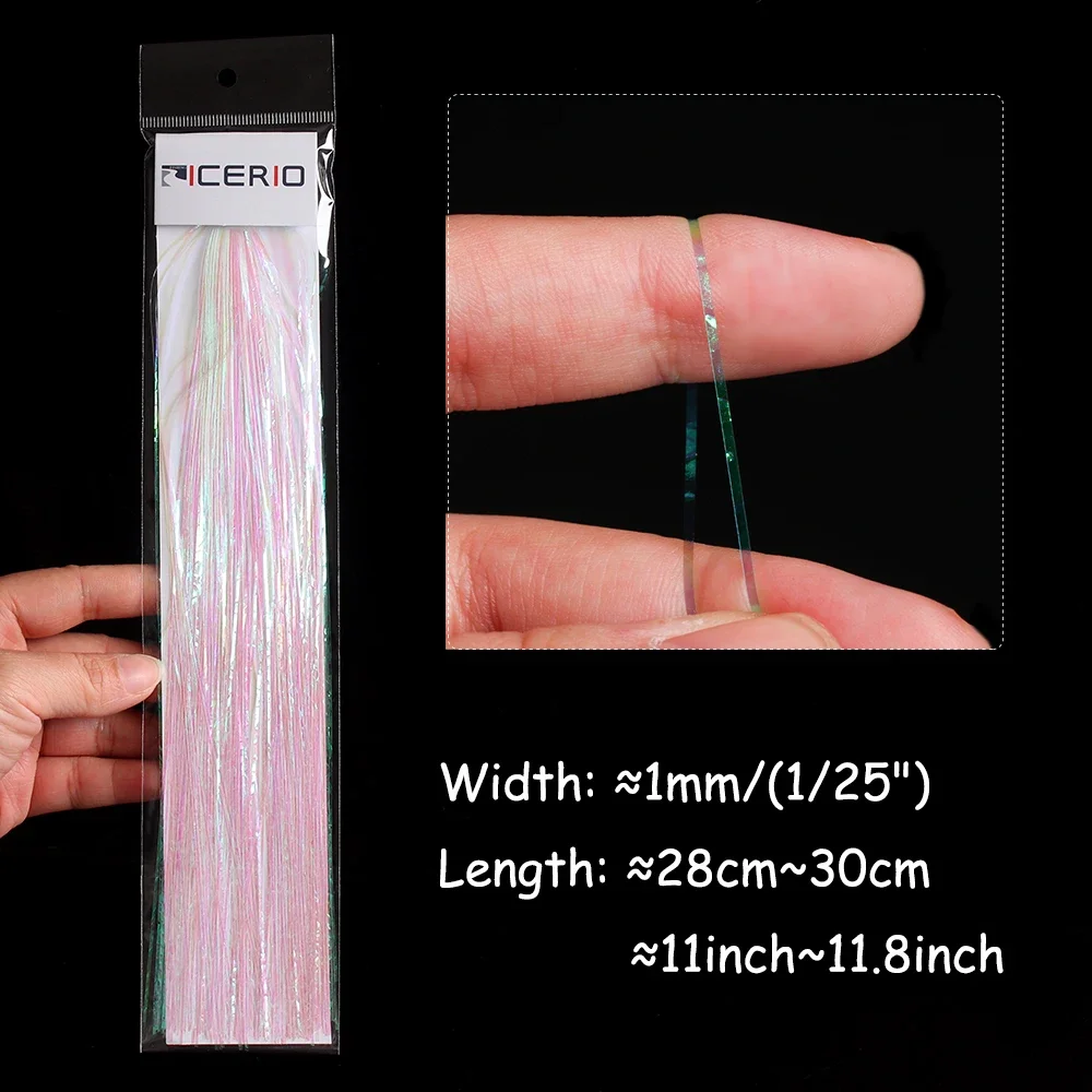Es un destello iridiscente que atrae a los peces como ningún otro material de destello. Las hebras son