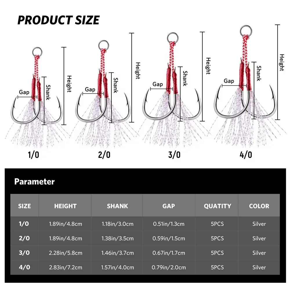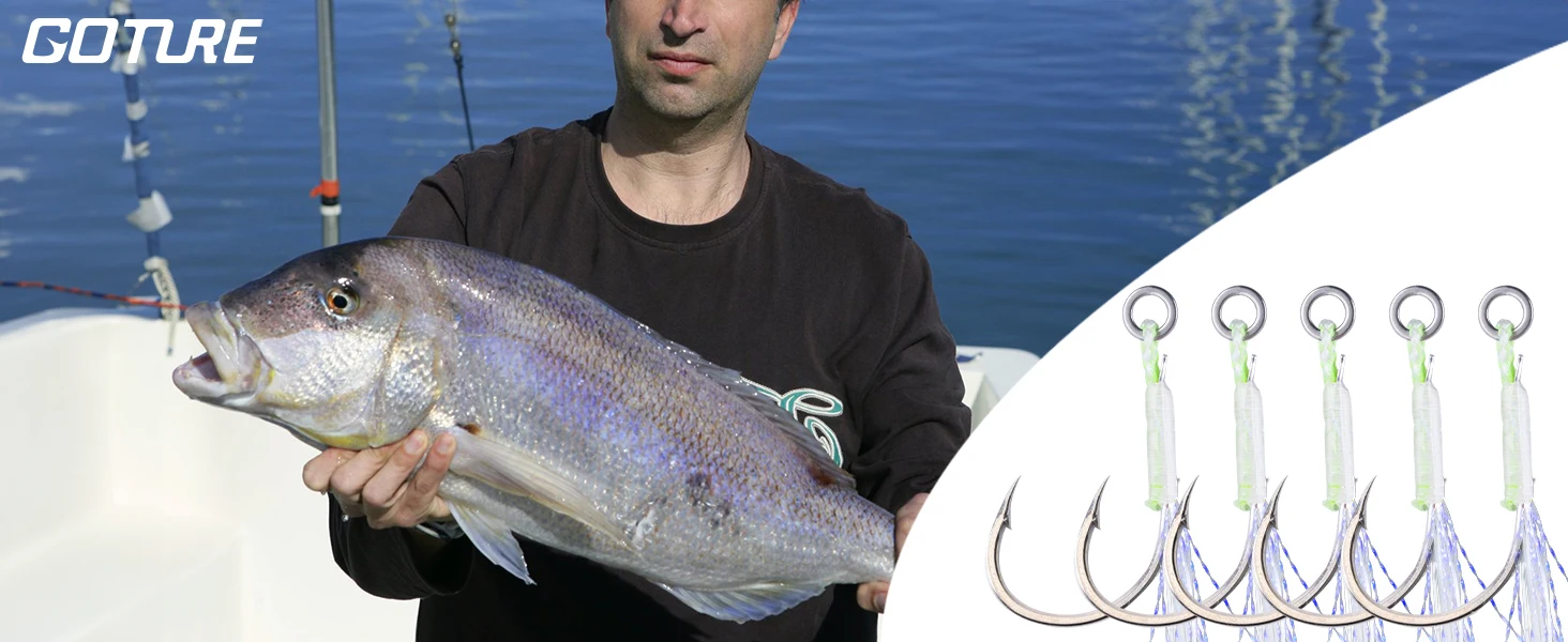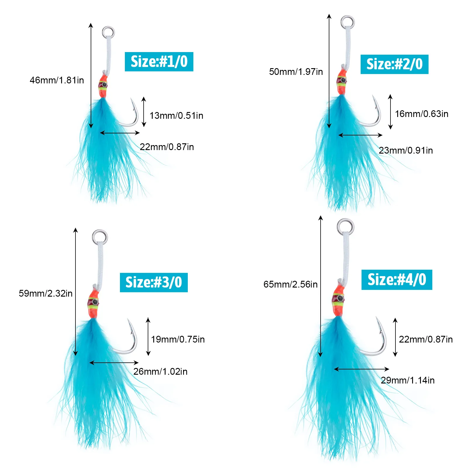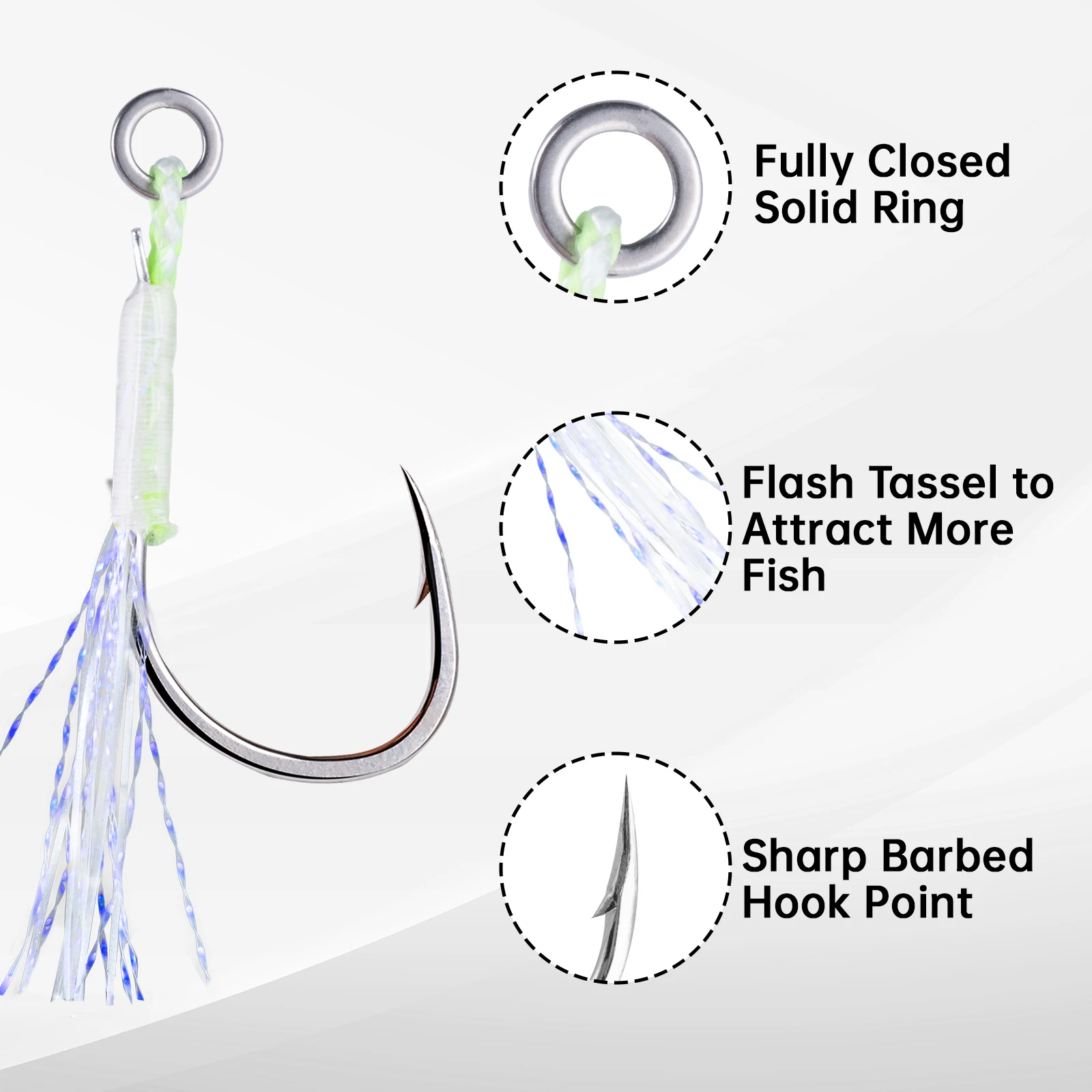 Ganchos de asistencia Goture para Jigging lento, anzuelo de púas de Metal, anzuelo de atado con pluma de teaser, juego de anzuelos de pesca de agua salada
