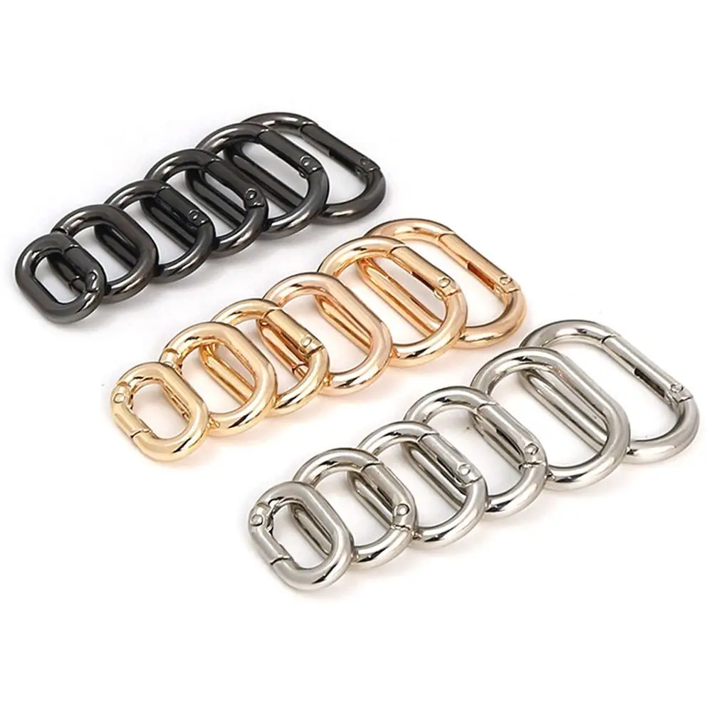 Nuevo con alta calidad, conveniente Material: Aleación de zinc Proceso de tratamiento: chapado Serie: llavero Color: plata, oro, negro Estilo: ovalado Tamaño: 21,2*14,2mm/28,8*20,6mm/37,8*24,4mm(L * W) Diámetro: 3,5/4,5mm Usos: Llave colgante, mochila colgante, tetera colgante, bolígrafo colgante, juguetes colgantes, adecuados para todo tipo de juguetes/papelería/joyería/Electrónica/ropa, Etc. Cantidad: 5 piezas (a su elección). Características: 1. Hecho de material de aleación de zinc 2. Portátil para llevar 3. Ligero y cómodo de usar 4. Reemplazo para anillos de monedero rotos (se desliza fácilmente a través del bucle o arandela restante) 5. Extienda o Alargue la correa del bolso o monedero 6. Ajuste los ojales y bucles para permitir el cambio de las correas del bolso. Úselo con otros anillos para crear un efecto de cadena. 7. Son ideales para reparar o extender las correas de su bolso y bolso de mano, también ideales para bolsas de pañales, bolsas de computadora, maletín y mucho más. 8. Son de liberación rápida y se pueden unir a carteras, bolsos y bolsas. El paquete incluye: 5 hebillas de anillo ovaladas de resorte (a su elección). Aviso: 1,1 cm=10Mm=0,39 pulgadas. 2. Permita un error de 1-2MM debido a la medición manual y asegúrese de que no le importe antes de realizar el pedido. 3. Por favor, comprenda que los colores pueden existir aberraciones cromáticas debido a la diferente colocación de las imágenes.