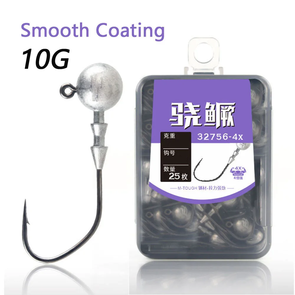 Ganchos de cabezas de Jigging 1G-14G 25 unids/lote gancho de pesca de acero al carbono para anzuelo de cabeza de anzuelo de gusano suave para aparejos de accesorios de pesca con caja