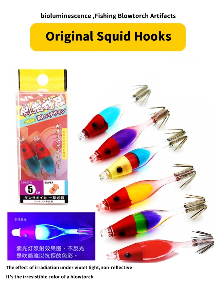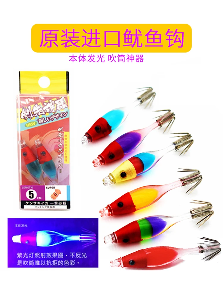 Ganchos de calamares divinos que brillan en la oscuridad, anzuelos Yatsushiro, pesca en el mar, anzuelos de camarones de madera que brillan en la oscuridad