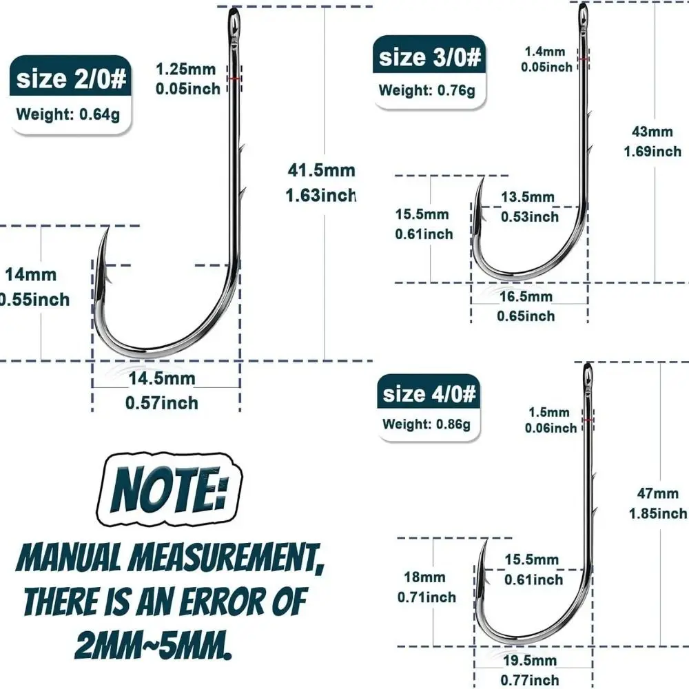 2/0#: 1.45cm x 4.15cm/0.57" x 1.63" (Approx.)