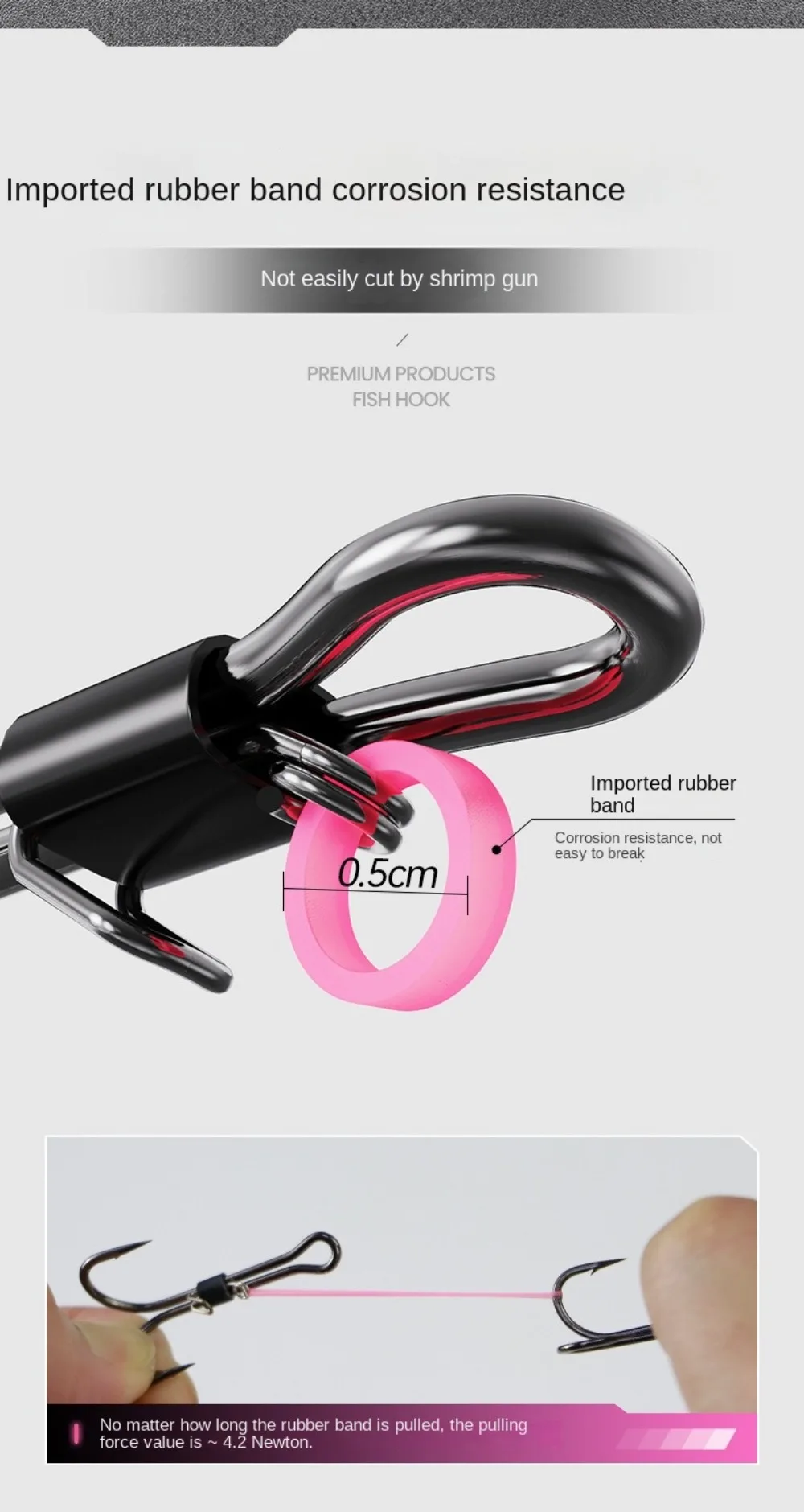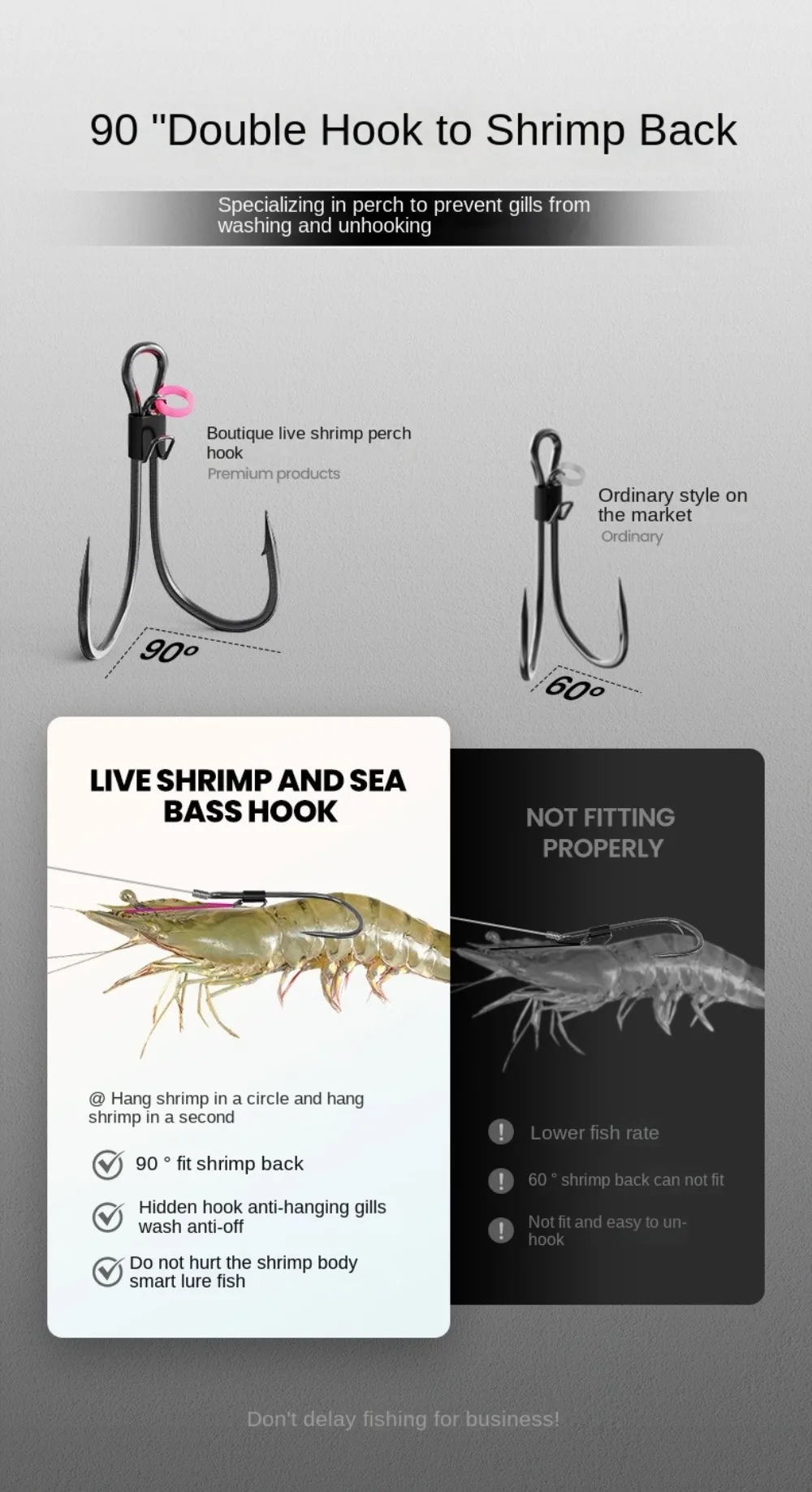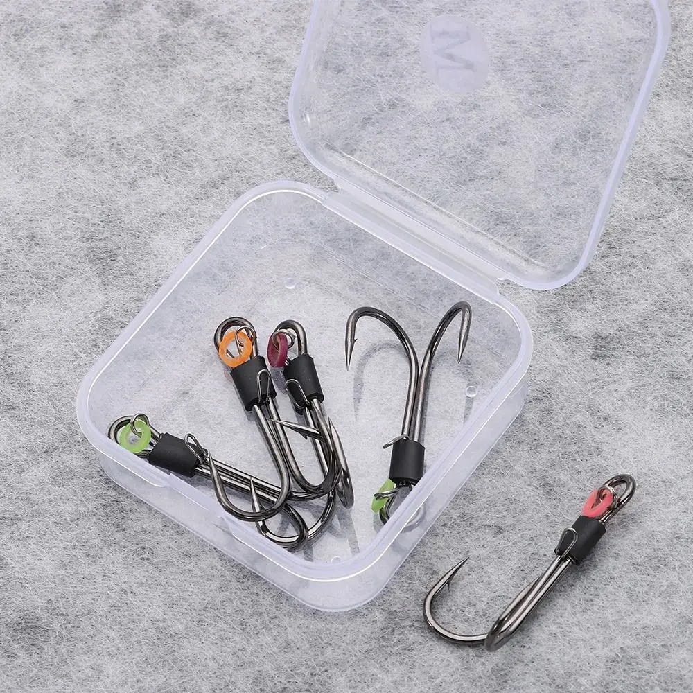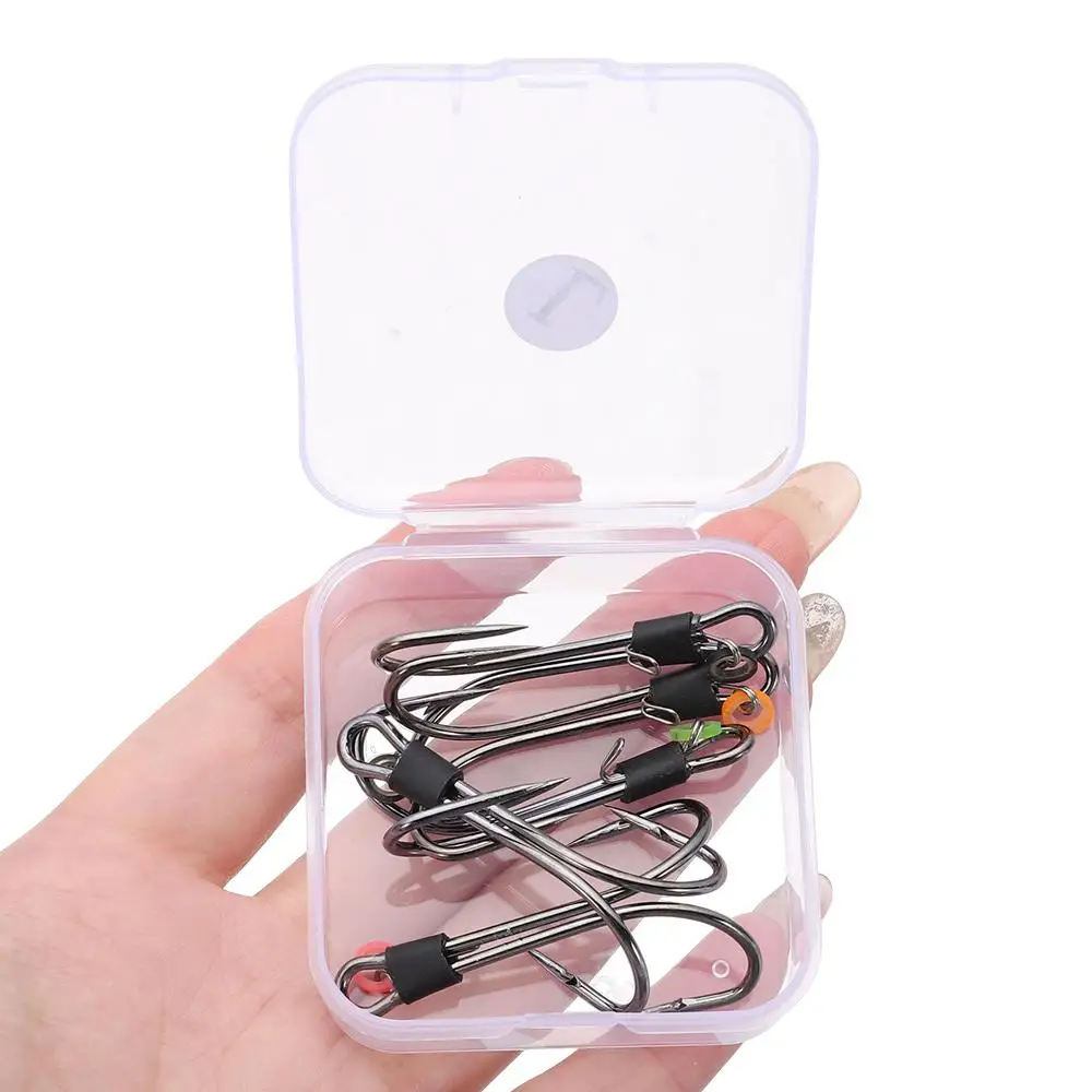 Versatile Application: Our Fish Hook is designed for a wide range of fishing scenarios, be it saltwater, freshwater, or brackish water. From rivers to lakes to these hooks deliver stable and reliable performance to meet your diverse fishing needs. Superior Durability: Crafted from high-quality carbon steel, our barbed fish hooks boast exceptional strength and durability. Whether facing challenging fishing conditions or reeling in heavy catches, these hooks remain steadfast, providing reliable protection for your fishing expeditions. Innovative Design: Experience unparalleled convenience with the double back barbs on our hooks. The innovative design ensures easy operation, allowing you to effortlessly secure live shrimp without intricate steps. This unique feature not only maintains shrimp activity but also showcases their graceful swimming motion. Portable Convenience: Our product includes compact and portable storage boxes for your convenience. These boxes keep your hooks organized and secure, whether you're embarking on long-distance fishing trips or short outdoor excursions. Enjoy the ease of carrying your hooks wherever you go and indulge in fishing at any time. Ideal Gift Choice: This Fish Hook serves as the perfect gift for fishing enthusiasts. Whether engaging in sea or freshwater fishing, this bait enhances your chances of catching fish. Elevate your fishing experience with this fishing hook. Description: Enhance your fishing experience with our versatile fish hook. Crafted from high-quality carbon steel, these hooks offer exceptional strength and durability, ensuring reliable performance in various fishing environments. The innovative double back barb design allows for easy operation, making it effortless to secure live bait like shrimp. The included compact storage box keeps your hooks organized and protected, perfect for on-the-go fishing trips. Whether you're fishing in saltwater, freshwater, or brackish water, our fish hooks provide the stability and reliability you need to reel in your next big catch. Ideal for both seasoned anglers and beginners, this fishing lure makes a great gift for any fishing enthusiast looking to improve their success rate on the water. Packaging Quantity:5pcs Barbed hook