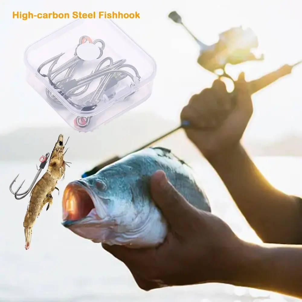 Versatile Application: Our Fish Hook is designed for a wide range of fishing scenarios, be it saltwater, freshwater, or brackish water. From rivers to lakes to these hooks deliver stable and reliable performance to meet your diverse fishing needs. Superior Durability: Crafted from high-quality carbon steel, our barbed fish hooks boast exceptional strength and durability. Whether facing challenging fishing conditions or reeling in heavy catches, these hooks remain steadfast, providing reliable protection for your fishing expeditions. Innovative Design: Experience unparalleled convenience with the double back barbs on our hooks. The innovative design ensures easy operation, allowing you to effortlessly secure live shrimp without intricate steps. This unique feature not only maintains shrimp activity but also showcases their graceful swimming motion. Portable Convenience: Our product includes compact and portable storage boxes for your convenience. These boxes keep your hooks organized and secure, whether you're embarking on long-distance fishing trips or short outdoor excursions. Enjoy the ease of carrying your hooks wherever you go and indulge in fishing at any time. Ideal Gift Choice: This Fish Hook serves as the perfect gift for fishing enthusiasts. Whether engaging in sea or freshwater fishing, this bait enhances your chances of catching fish. Elevate your fishing experience with this fishing hook. Description: Enhance your fishing experience with our versatile fish hook. Crafted from high-quality carbon steel, these hooks offer exceptional strength and durability, ensuring reliable performance in various fishing environments. The innovative double back barb design allows for easy operation, making it effortless to secure live bait like shrimp. The included compact storage box keeps your hooks organized and protected, perfect for on-the-go fishing trips. Whether you're fishing in saltwater, freshwater, or brackish water, our fish hooks provide the stability and reliability you need to reel in your next big catch. Ideal for both seasoned anglers and beginners, this fishing lure makes a great gift for any fishing enthusiast looking to improve their success rate on the water. Packaging Quantity:5pcs Barbed hook