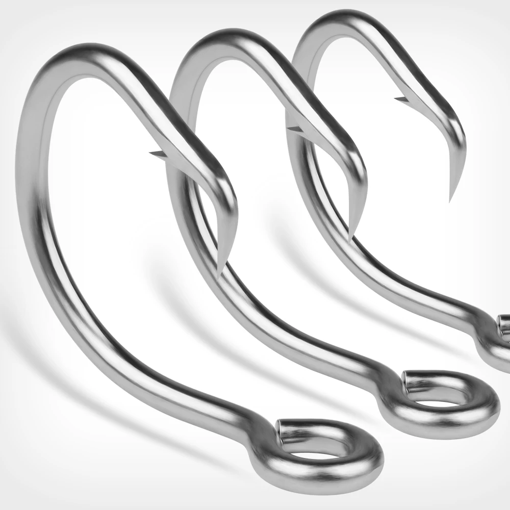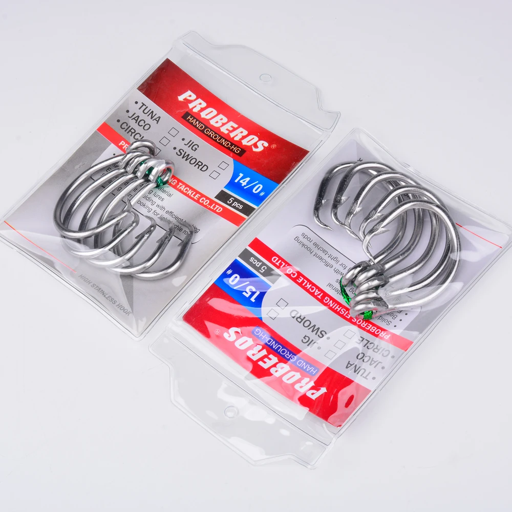 Ganchos circulares de atún de acero inoxidable, gancho de agua salada para juego grande, gancho circular de vástago corto Extra fuerte 13/0-16/0, 5 uds.