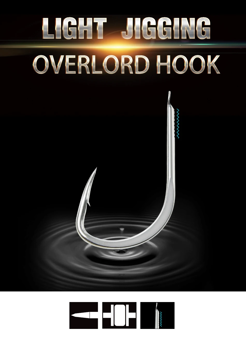 JK LOLHV/LOL Jigging Hook está construido fuerte con su área templada específica en el vástago. Están diseñados para ser increíblemente fuertes y el punto de gancho está en ángulo para la penetración de Punto más eficiente.