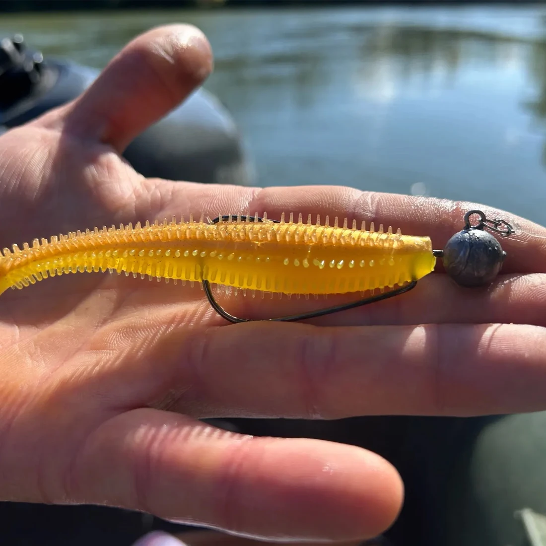 El espacio adicional entre el mango y la punta del anzuelo permite que los cebos más grandes colapsen más fácilmente, lo que aumenta la penetración del anzuelo.