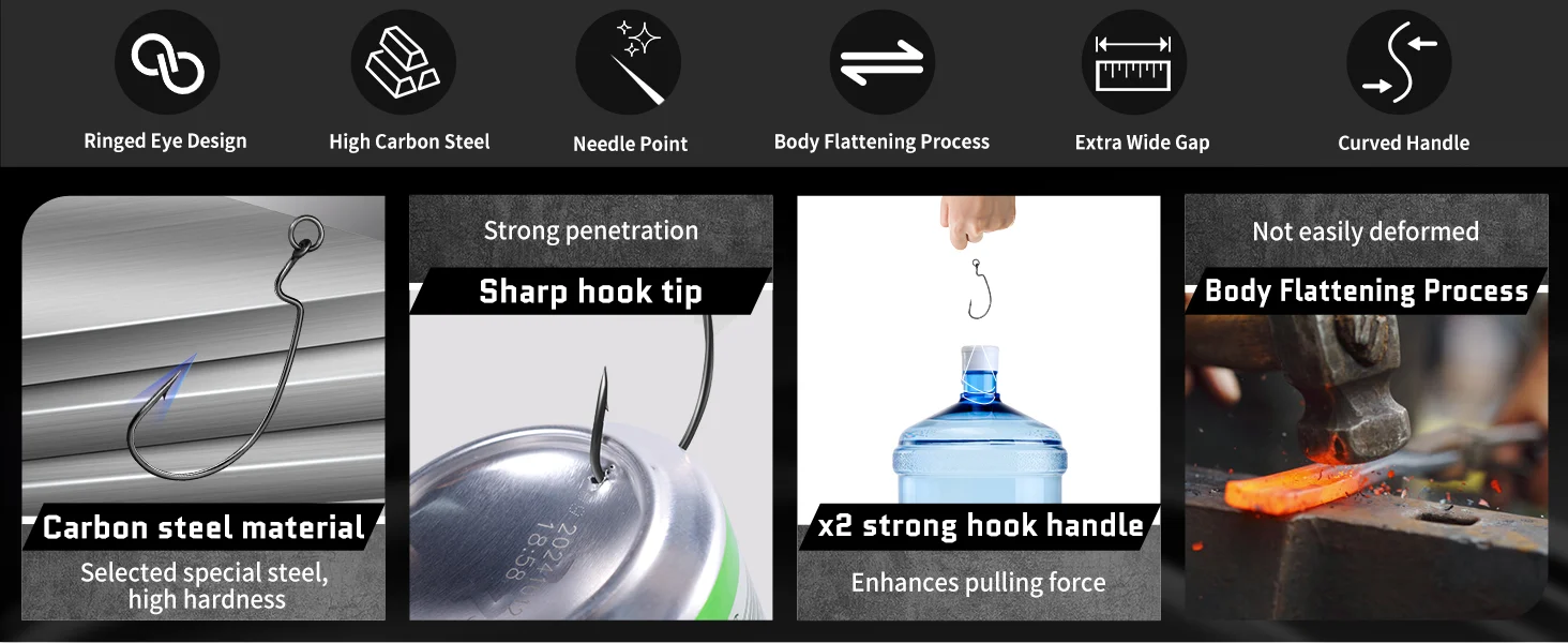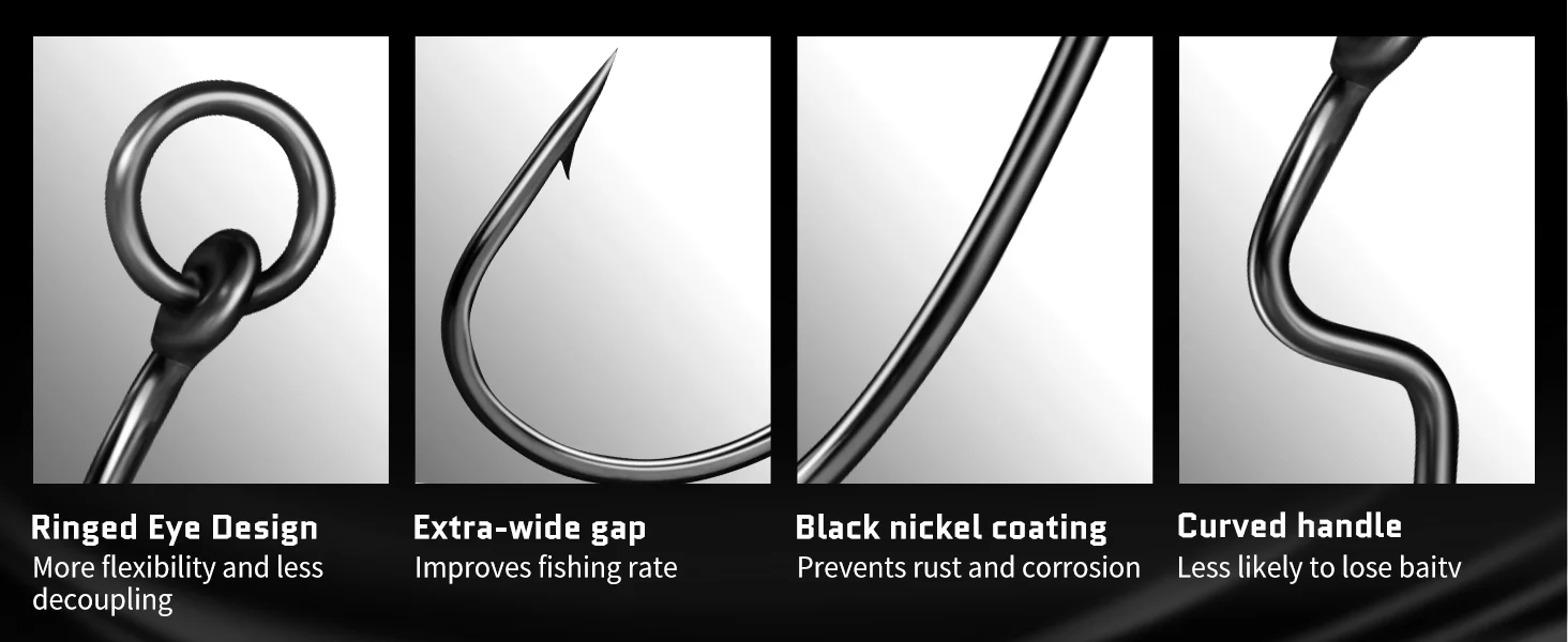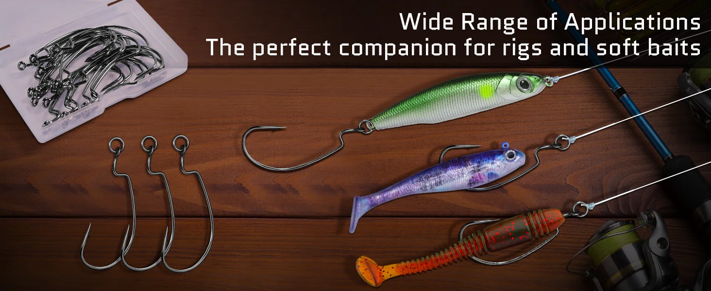 Estos anzuelos de gusano desplazados y de ojo cerrado son adecuados para diversos aparejos de pesca, como aparejos texas, aparejos de carolina, aparejos sin plomo,