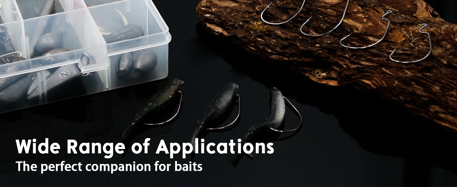 Estos anzuelos de gusano desplazados y de ojo cerrado son adecuados para diversos aparejos de pesca, como equipos texas,