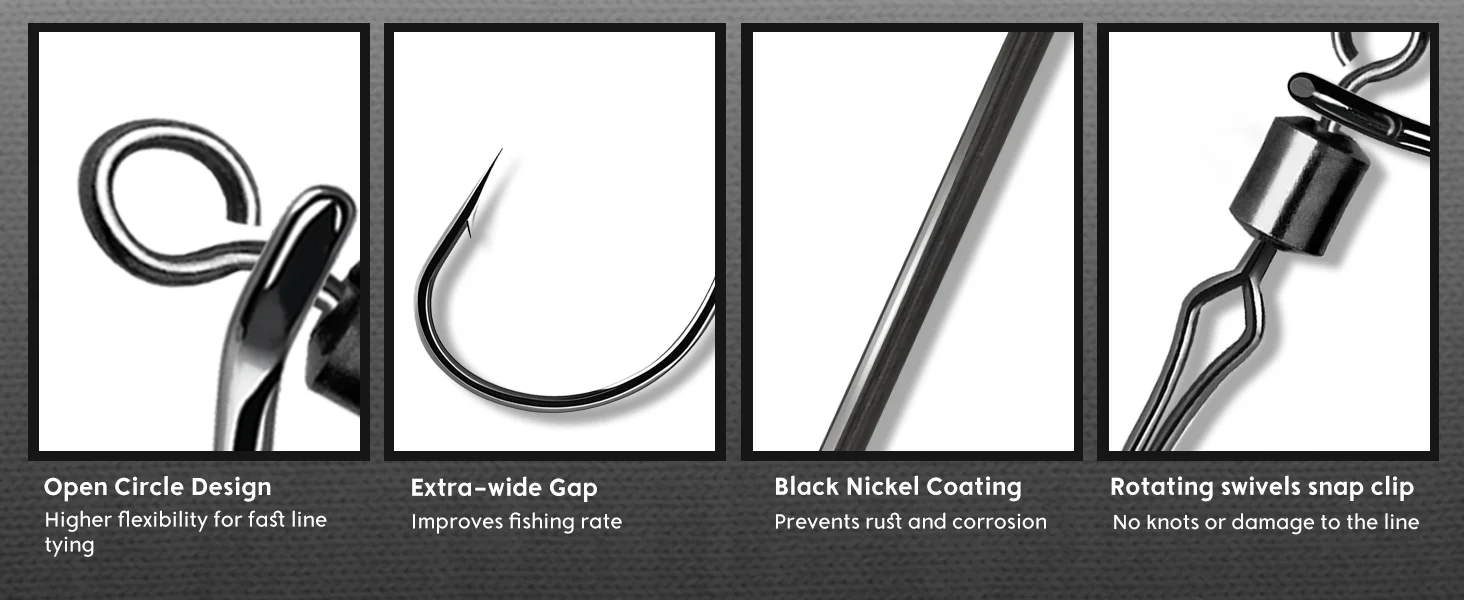 Muchos anzuelos para múltiples aparejos o reemplazos, lo que los convierte en imprescindibles para los pescadores de torneos y los pescadores de fin de semana.
