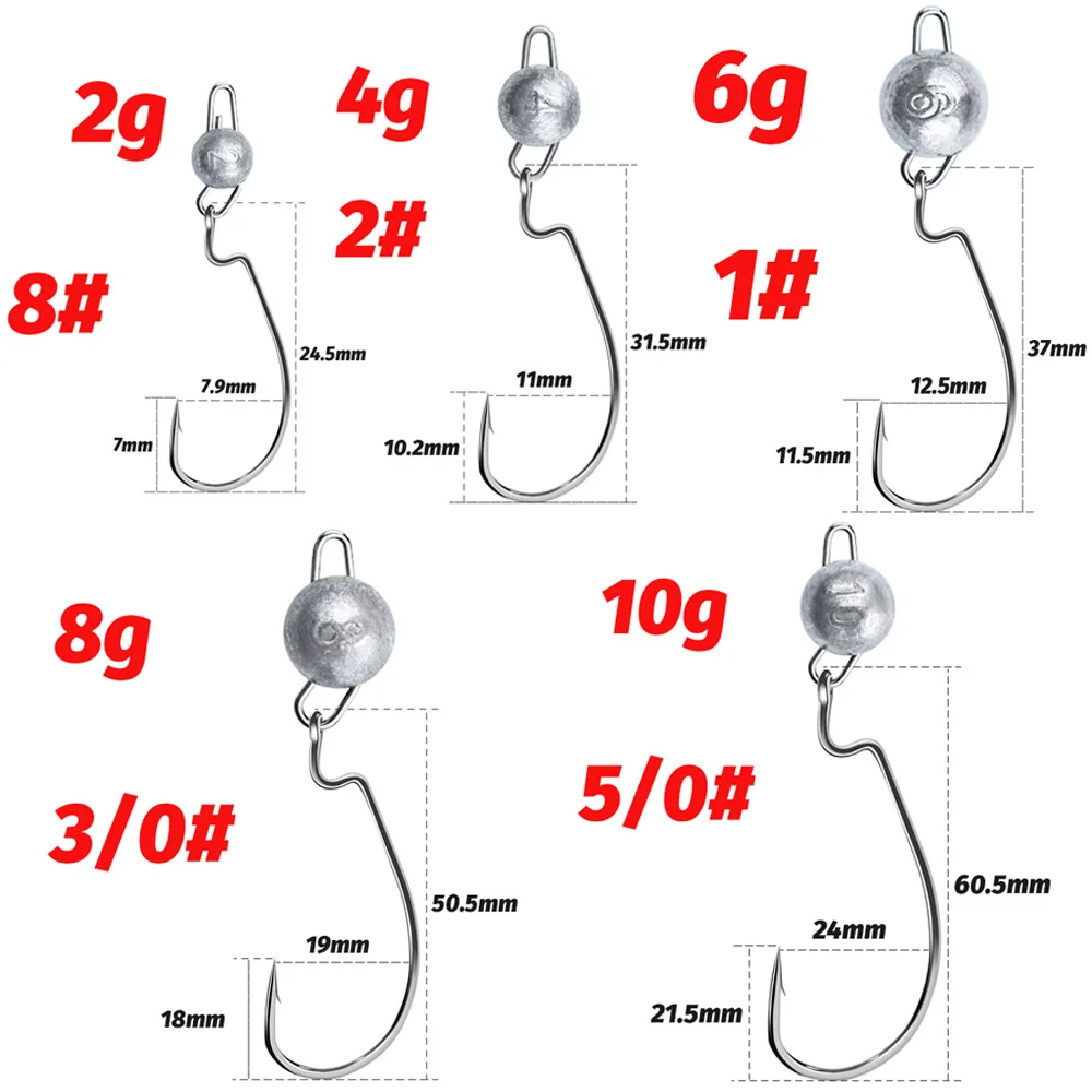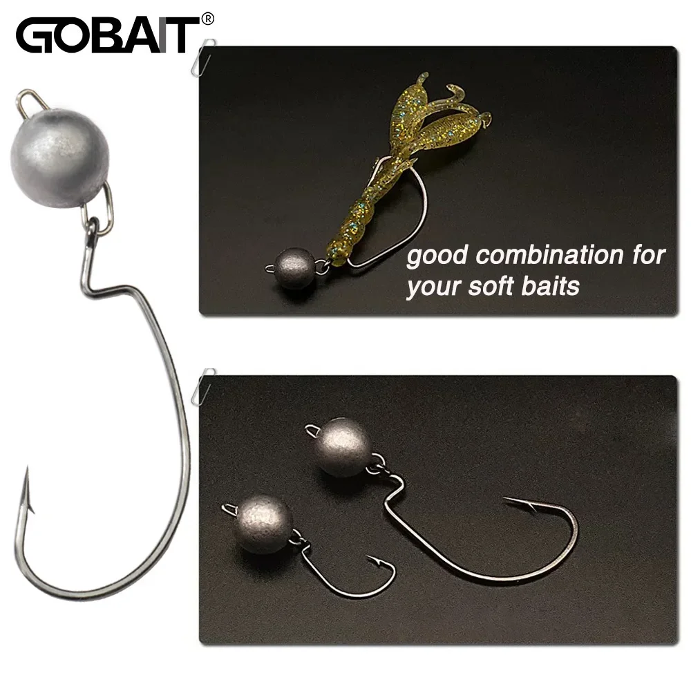 GOBAIT plantilla con peso, cabeza de manivela, anzuelo con púas, peso pesado, señuelo suave, gusano, lanzamiento largo, offset, gran espacio, anzuelo de gusano Swimbait