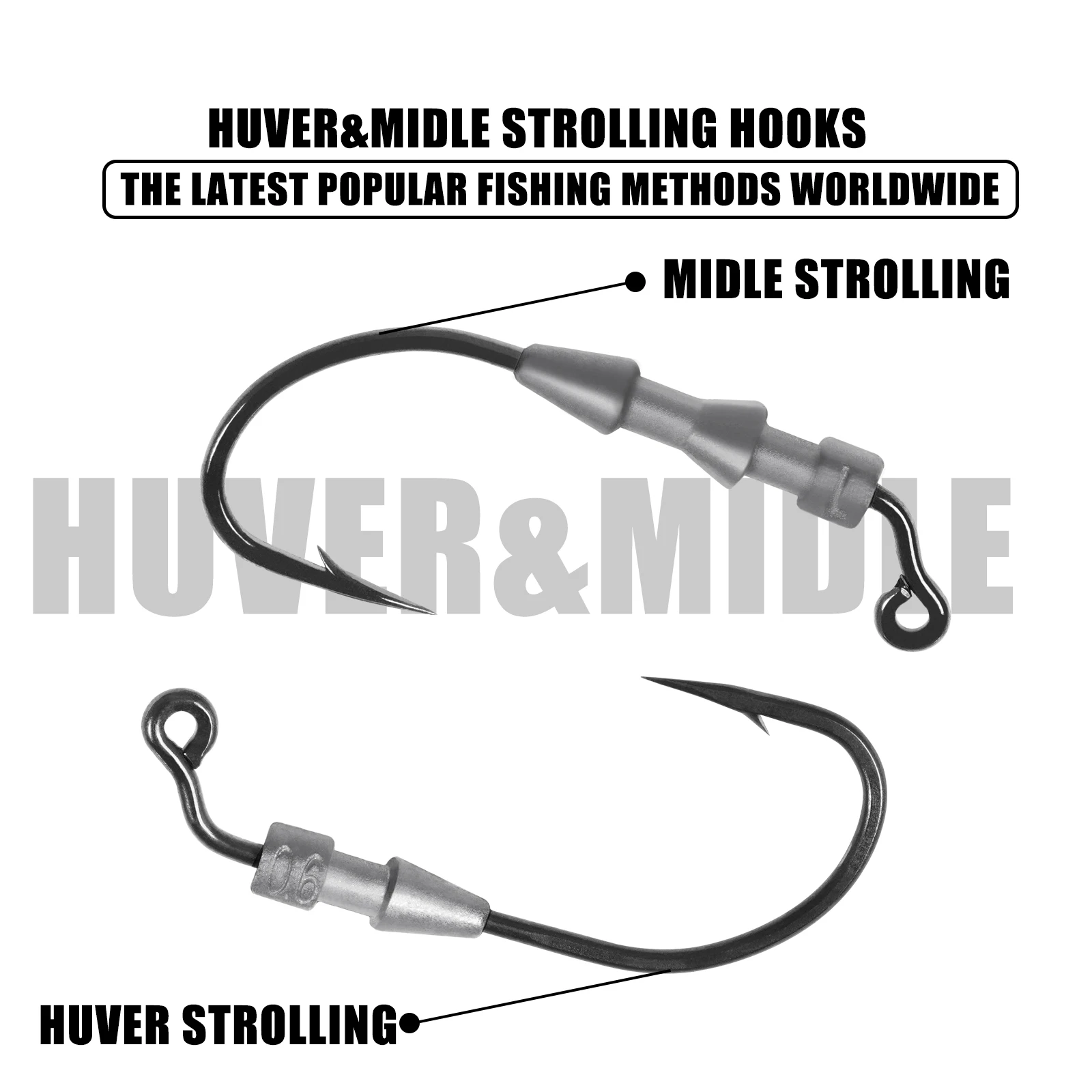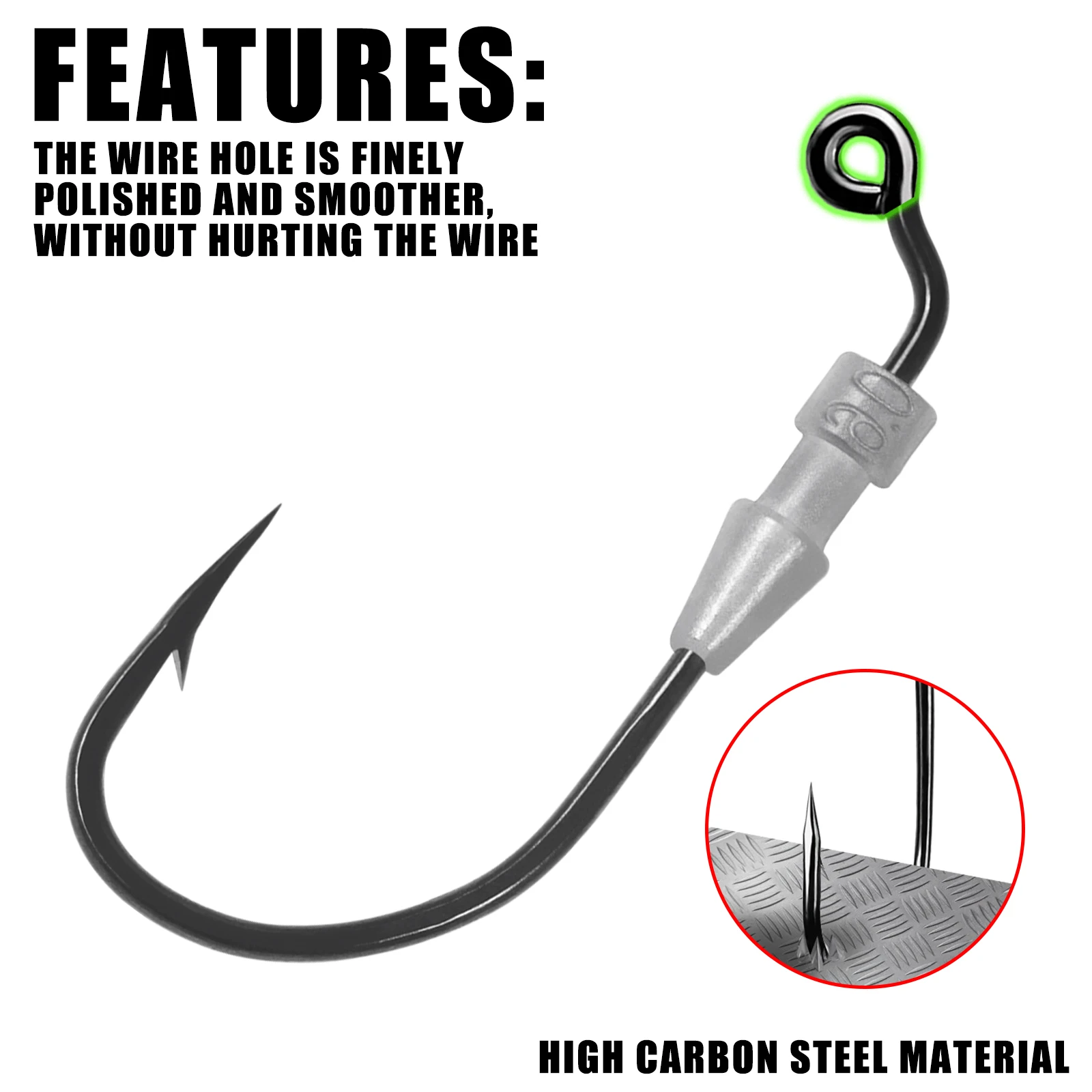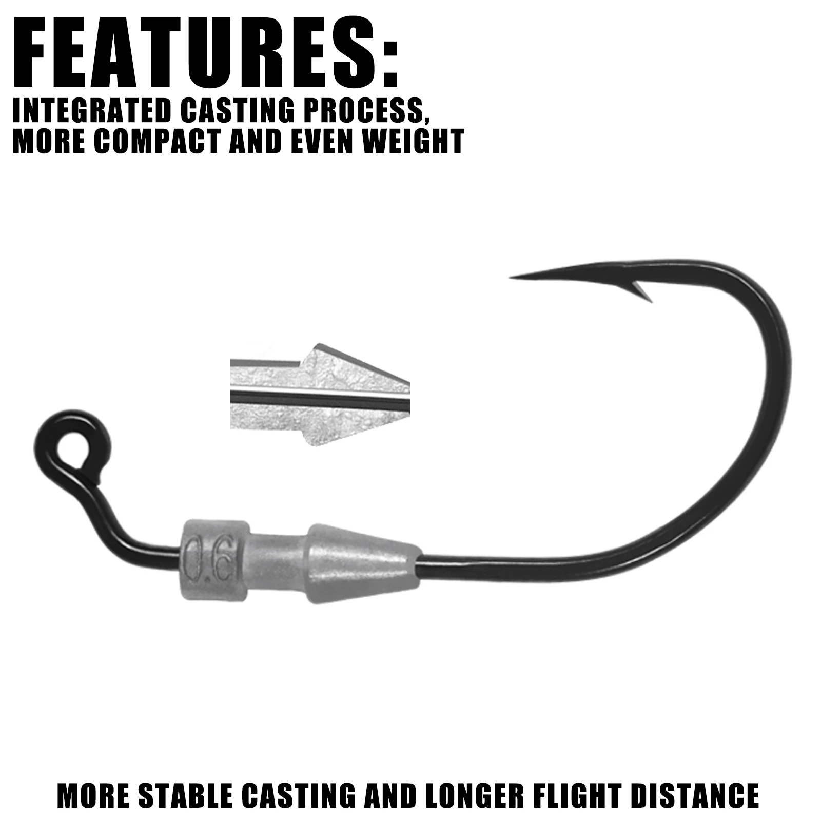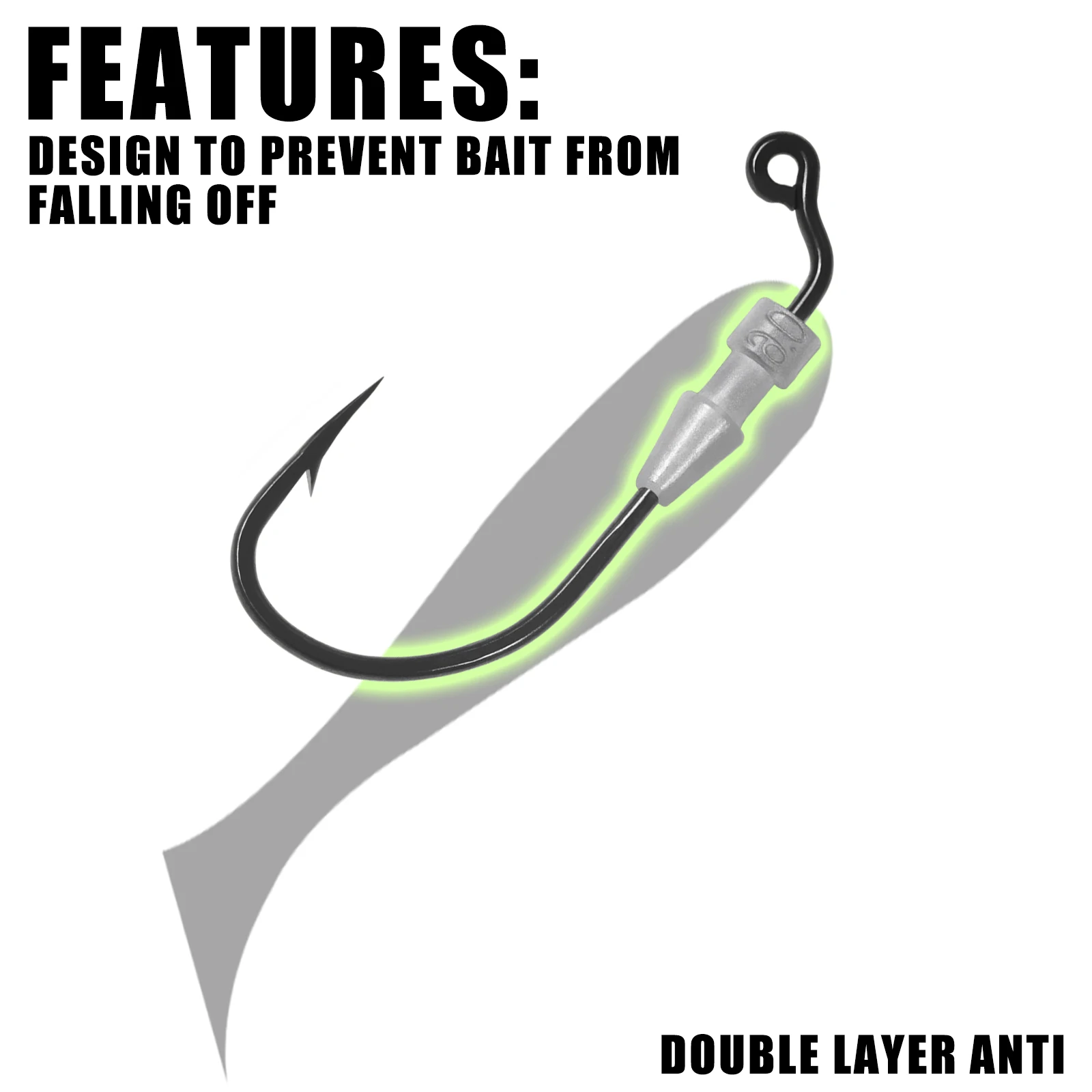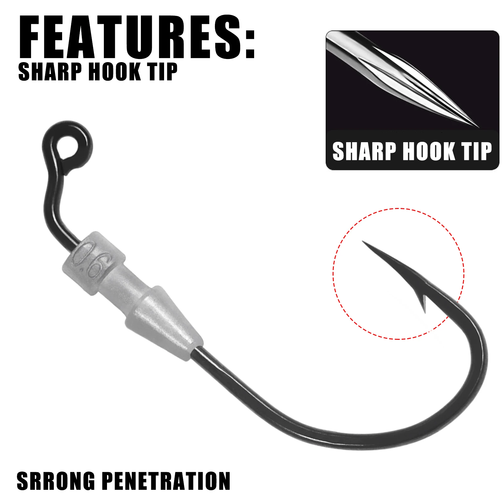 Ganchos de gusano ponderados para pesca, 5 uds., para señuelos de plástico blando, anzuelos de cabeza de plantilla, anzuelos de manivela de púas para agua salada de agua dulce