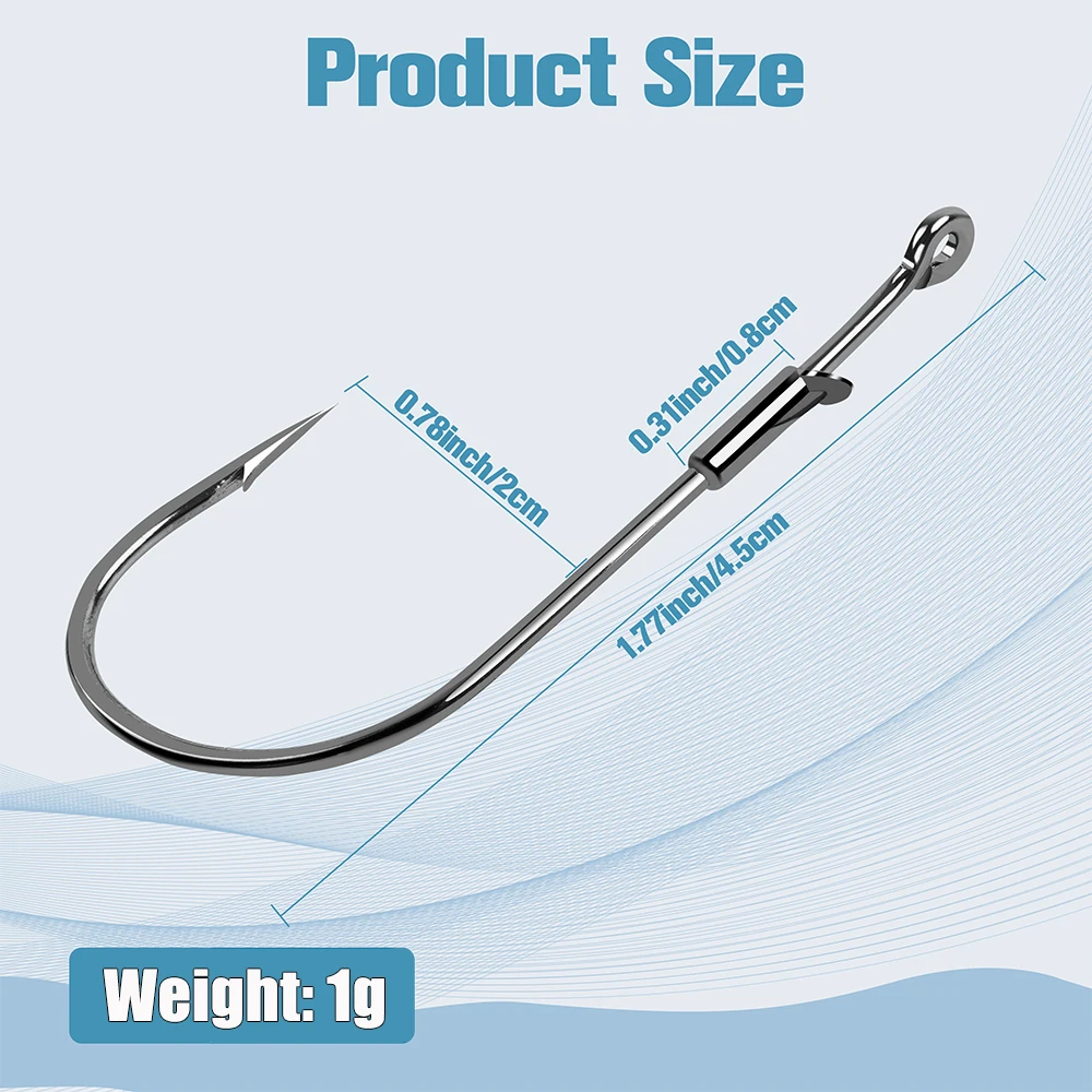 Los ganchos de gusano ponderados están hechos de acero de alto carbono, adecuado para agua dulce y salada.