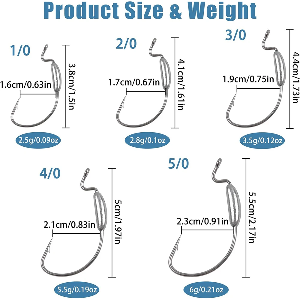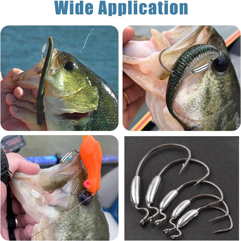 3.Weighted fishing hooks designed for both freshwater and saltwater,Target fish like bass, redfish, snook, smaller tarpon, largemouth, trout, salmon
