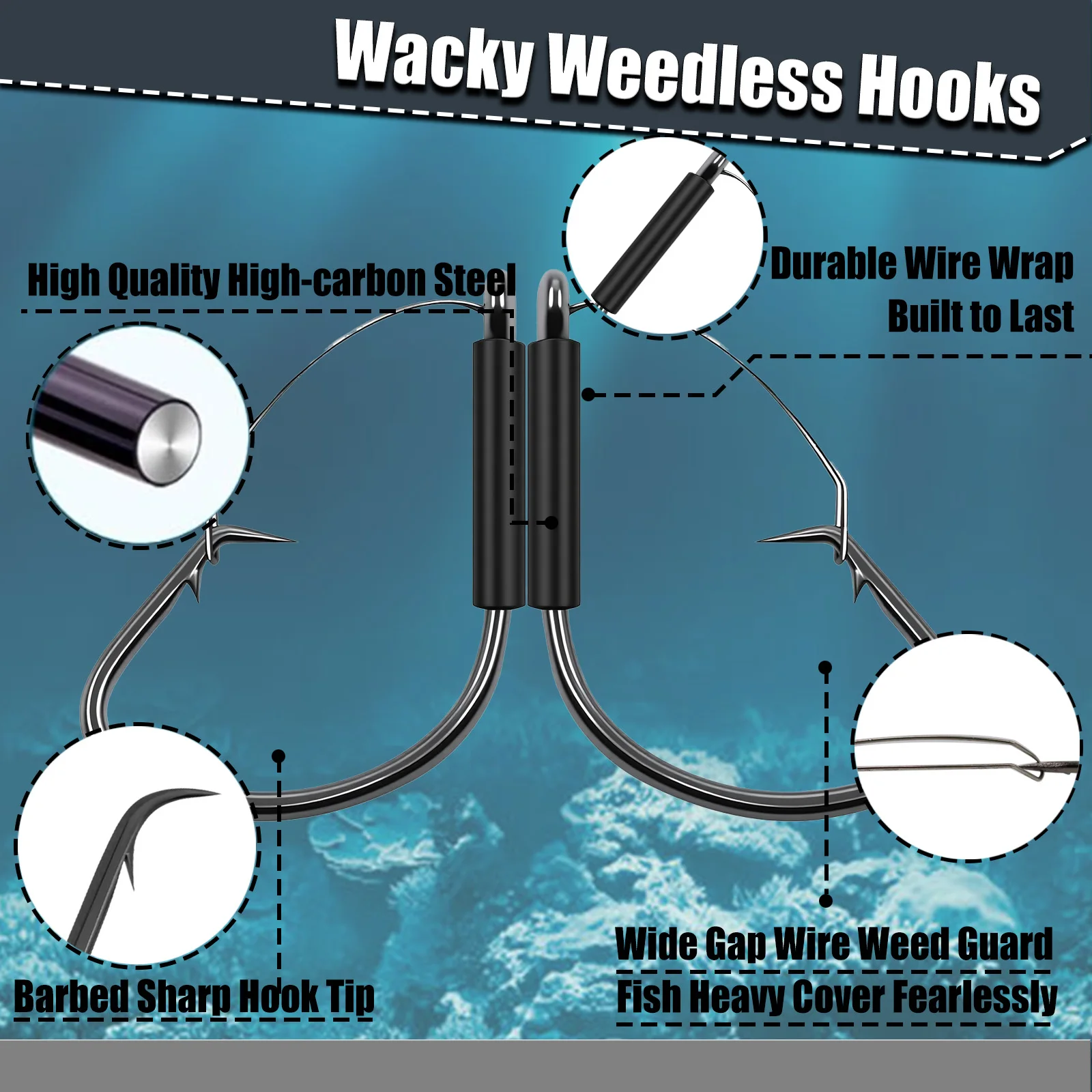Protector contra malezas de alambre:Cada anzuelo de pesca extravagante está diseñado con un protector contra malezas de alambre, lo que hace que su señuelo no se enganche, lo que le permite colocar el anzuelo a lo largo de la orilla, debajo de las muelles o alrededor de las rocas.hierba, madera, evitando colgados o enganches; Cuando los peces se someten, el alambre se presionará y no afectará al pez al cebo.