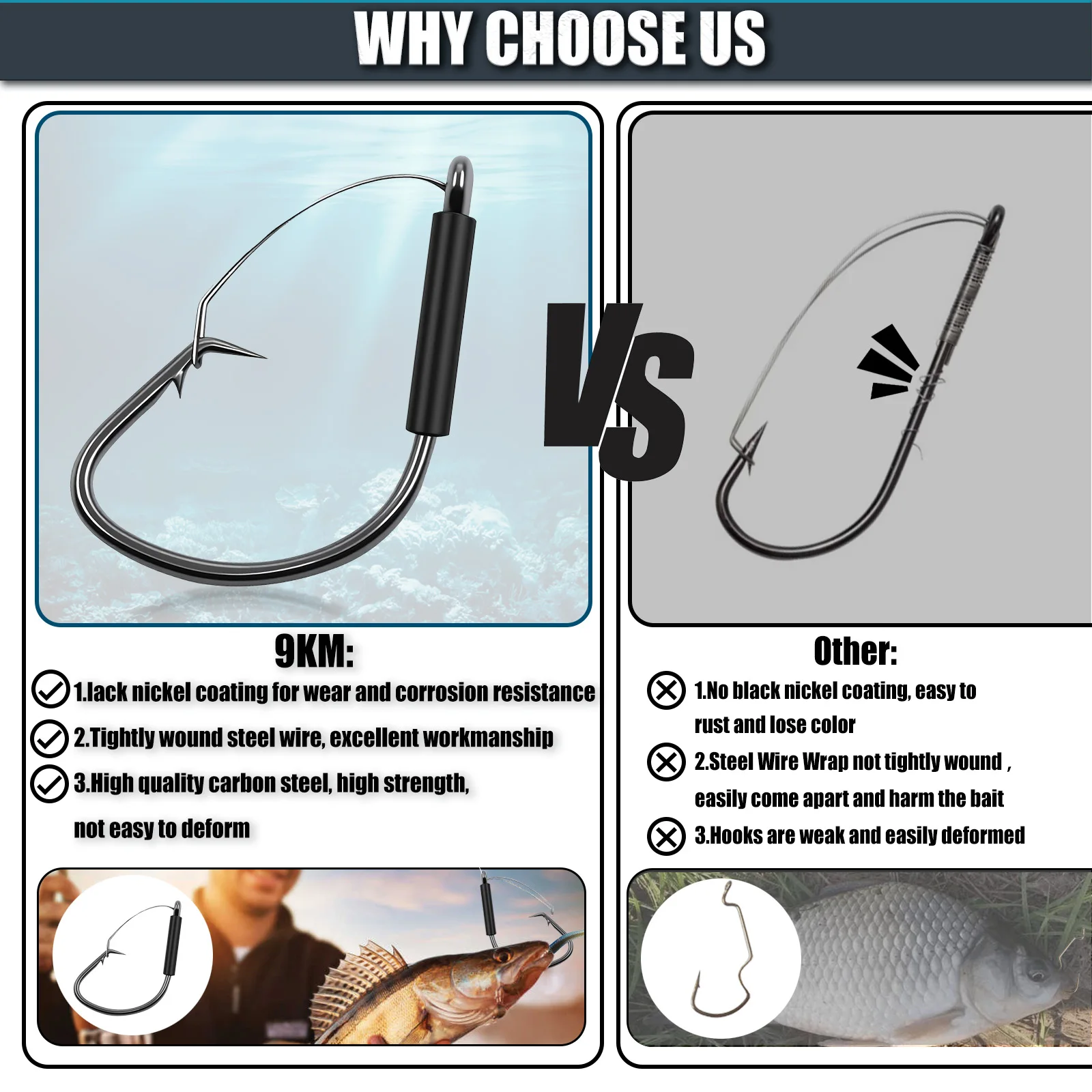 Los extravagantes anzuelos para gusanos están hechos con mano de obra fina con material de acero al carbono de calidad, resistentes y duraderos para soportar el peso de los peces, fuertes y confiables, puede almacenarlos y usarlos durante mucho tiempo.