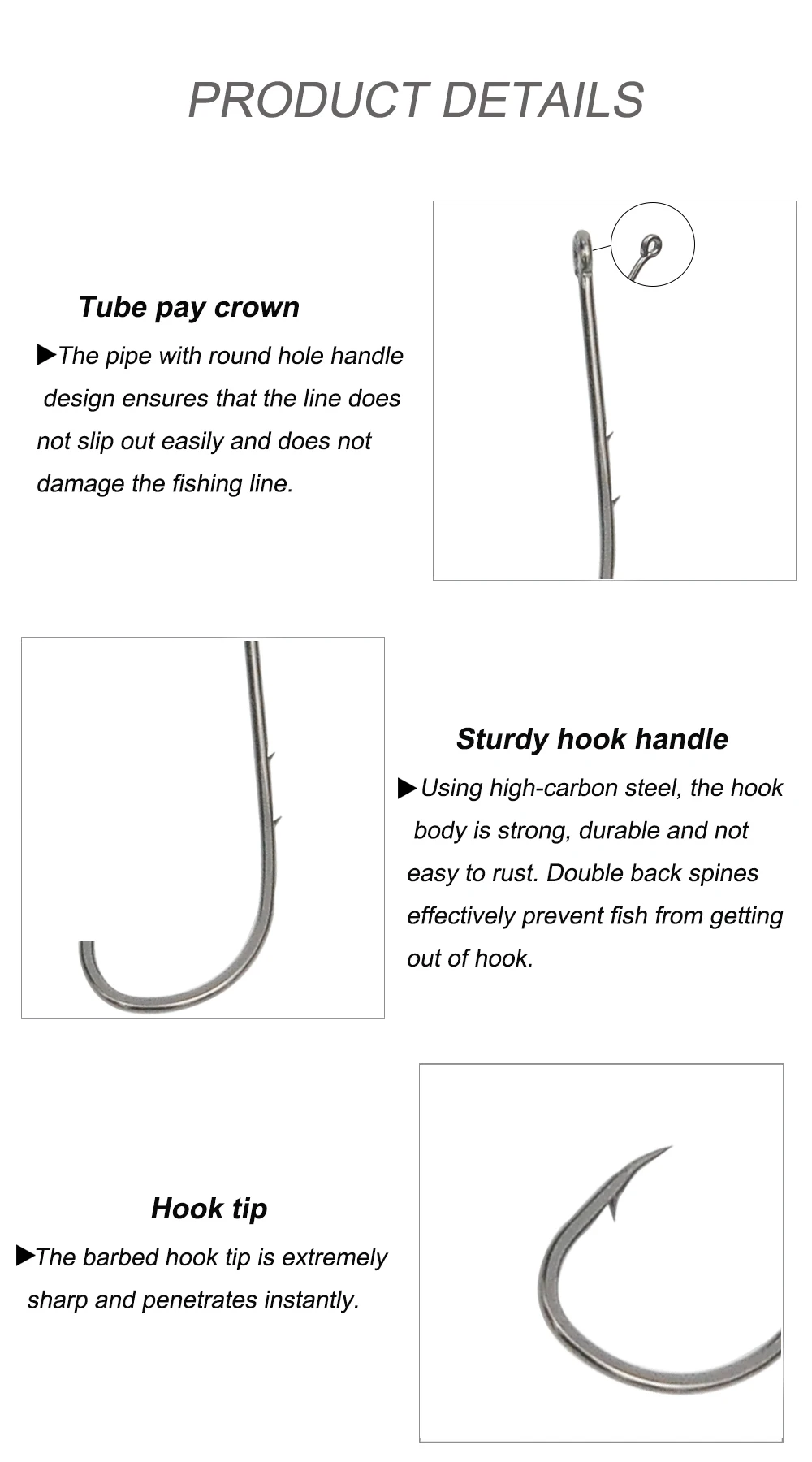 4 para evitar que el anzuelo se endereza o se rompa después de atrapar el pez grande, se hizo un tratamiento de aplanamiento preciso de acuerdo con el grado de flexión de diferentes configuraciones para garantizar la dureza y la resistencia del anzuelo.