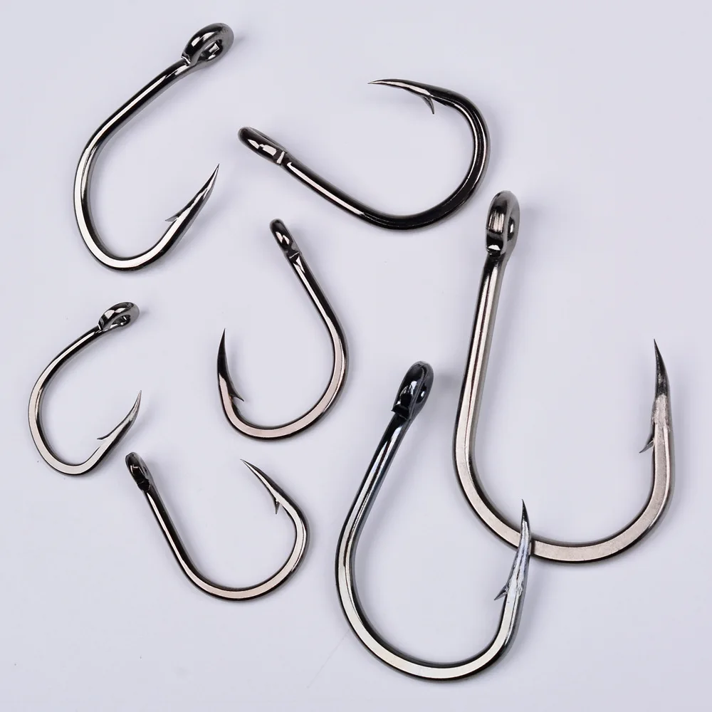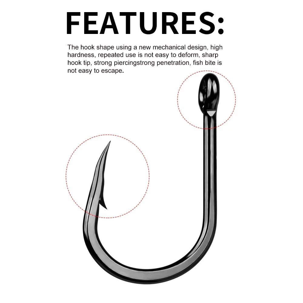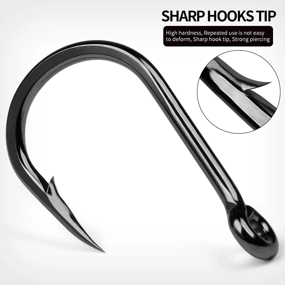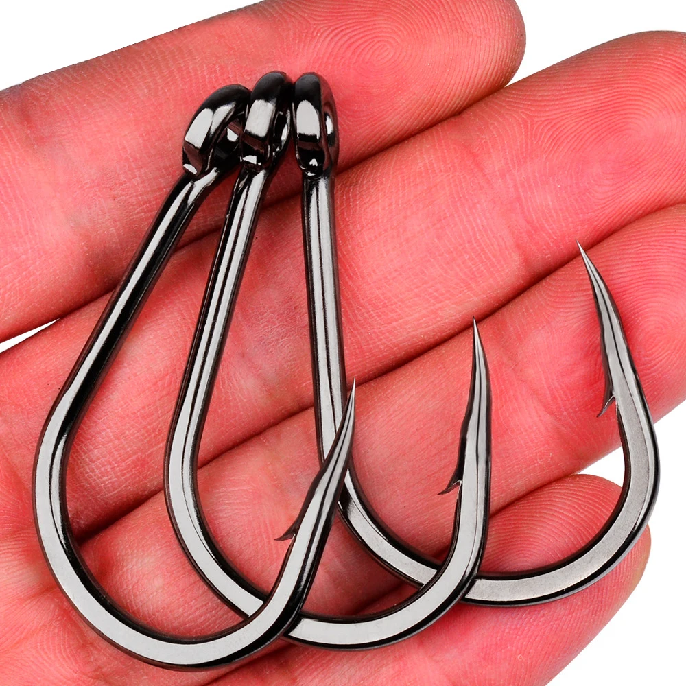 Ganchos de púas de 20 piezas, anzuelos compensados fuertes de acero rico en carbono con súper fuerza de tracción para pesca en el mar, arenque de esturión, tamaño 1 # -10/0 #