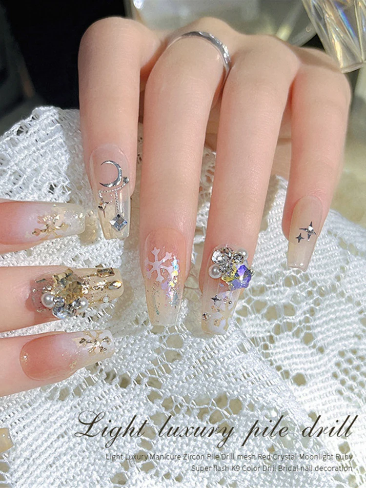 Amplia gama de aplicaciones: Los diamantes de agua de cristal de uñas son fáciles de aplicar a uñas naturales, uñas artificiales, uñas acrílicas, joyas de uñas, aplicable a la decoración de uñas, decoración artesanal, pero también se utiliza para decorar teléfonos móviles, zapatos, bolsos, ropa, maquillaje de ojos, arte corporal, etc.