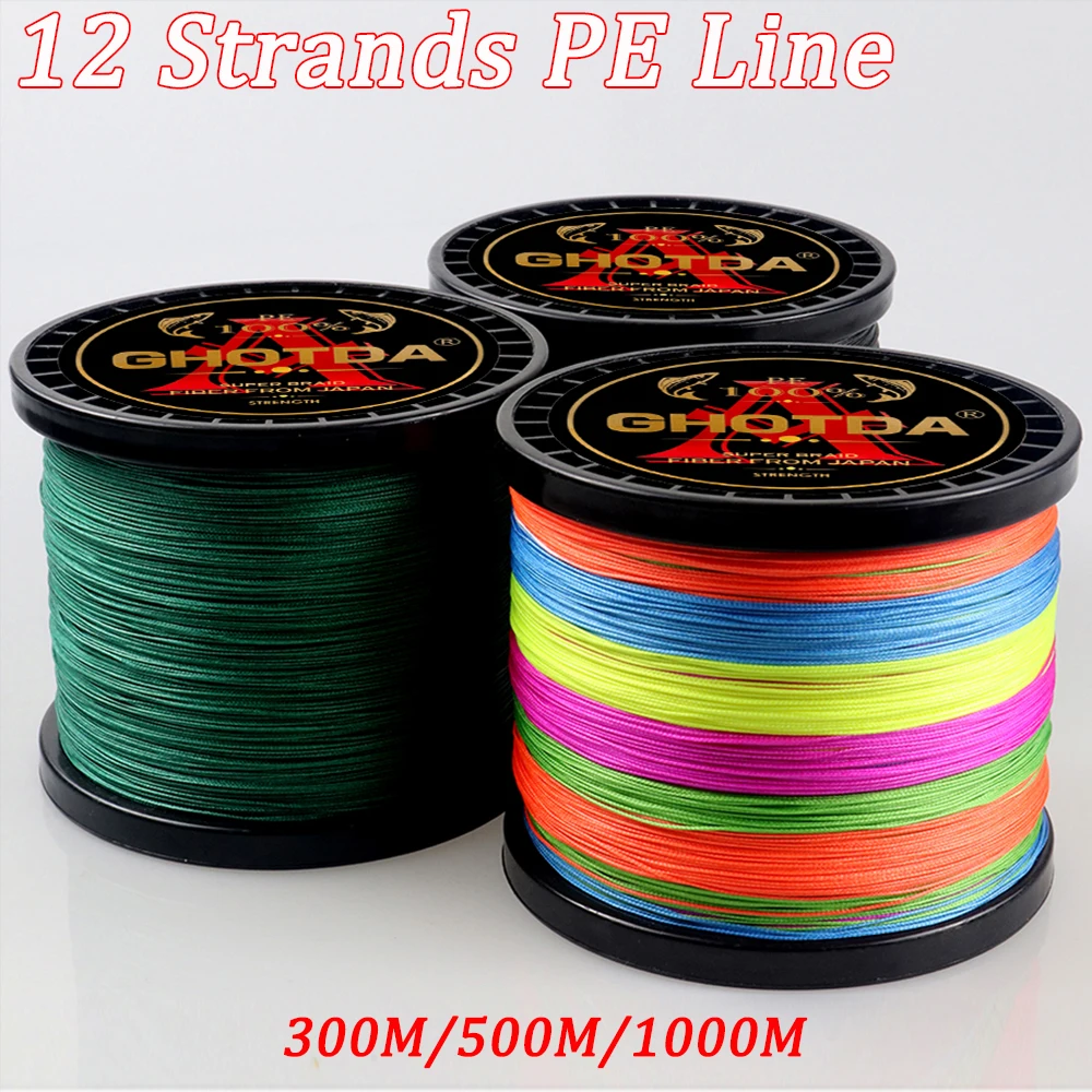 GHOTD-sedal de pesca de 12 hebras, 1000M, 500M, 300M, alambre trenzado de PE fuerte, multifilamento de 11,3-54,5 kg, alambre japonés duradero para agua salada y mar