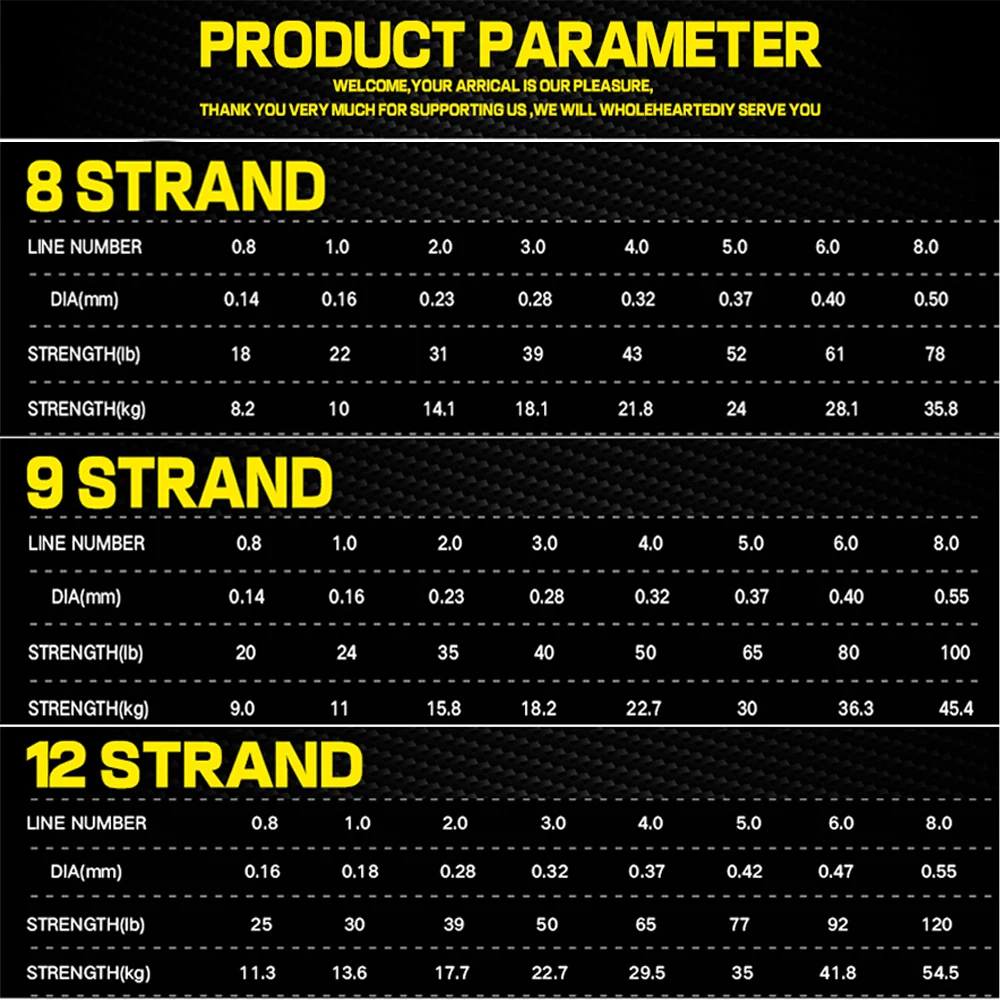 X8 braided PE line is weaved by 8-strand wires, and its body is thin, soft, highly sensitive and very smooth. The soft line can increase the probability of fish biting the hook, making fishing easier, which is very helpful for beginners. This is a fishing line suitable for small/medium sized fish species.9 STRANDS PE FISHING LINE