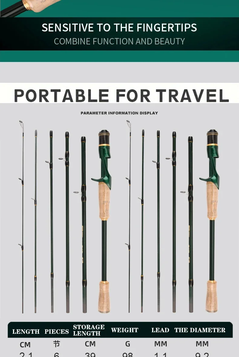 ⑤Six-sections Fishing Rod Design,Travel Surfing and Outdoor Easy Storage,Suitable for All Waters