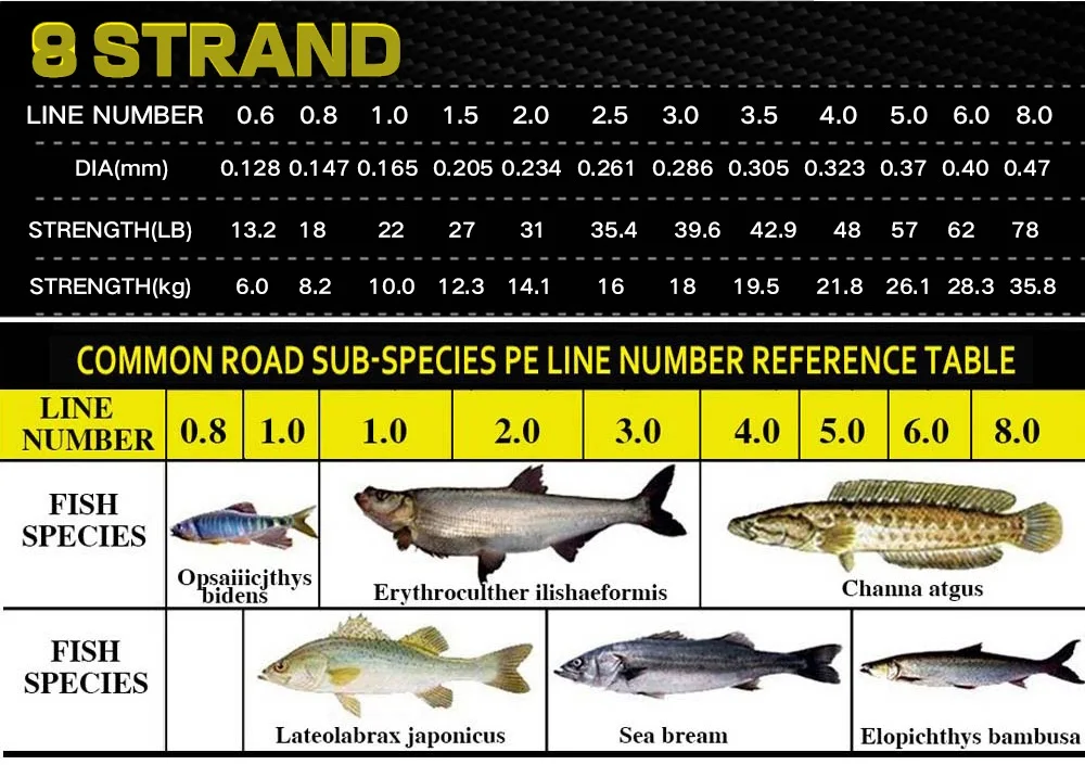 Nota:El número de línea no es el diámetro, revise la tabla cuidadosamente y déjenos un mensaje si hay algo confuso, ¡Gracias!