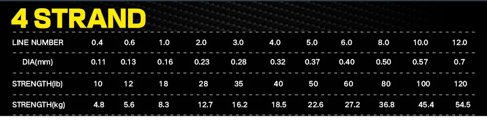 Parámetro de 8 hebrasNúmero de línea 1,0 #-0,16mm - 22lb - 10kg