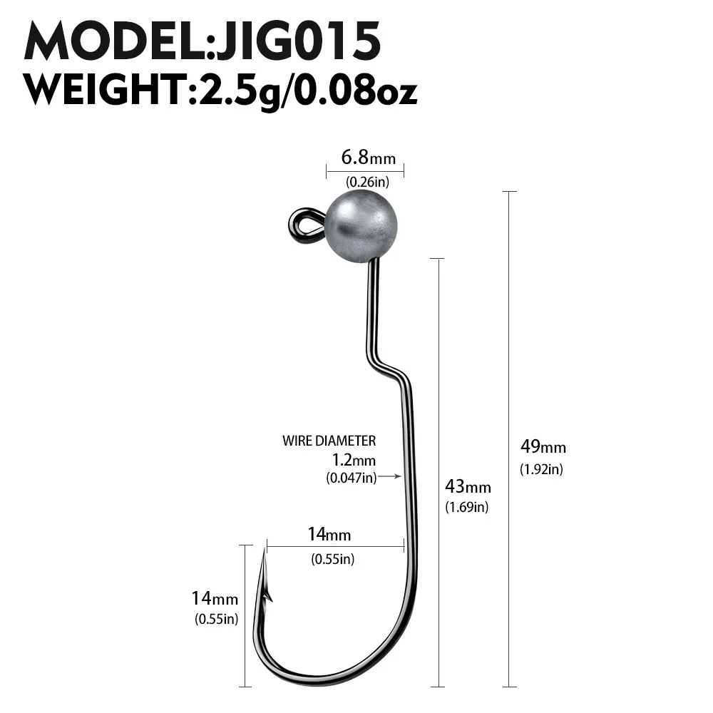 5 unids/lote anzuelo de pesca de gusano con cabeza de plantilla sin malas hierbas 1g/1,8g/2,5G/3,5g cebo de plomo caída Vertical rápida
