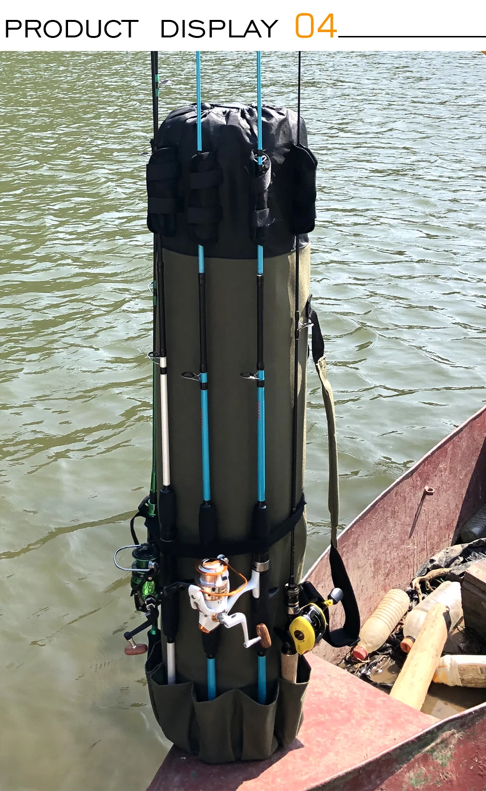 CaracterísticasHecho de tela Oxford duradera, resistente al agua y al desgaste.Cinco cañas y carretes en la bolsa exterior. Un bolsillo lateral y un gran compartimento interior.Gran capacidad y correas ajustables, conveniente y portátil.Maravilloso compañero para pescadores.Lista de embalaje1 bolsa para caña de pescarNOTA: Las herramientas de pesca (cañas de pescar, carretes de Pesca, Señuelos de Pesca...) en la imagen no están incluidas en el paquete.