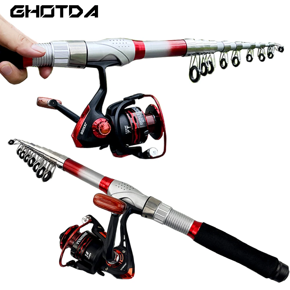 1. Esta caña de pescar está hecha de fibra de carbono, fuerte y duradera.