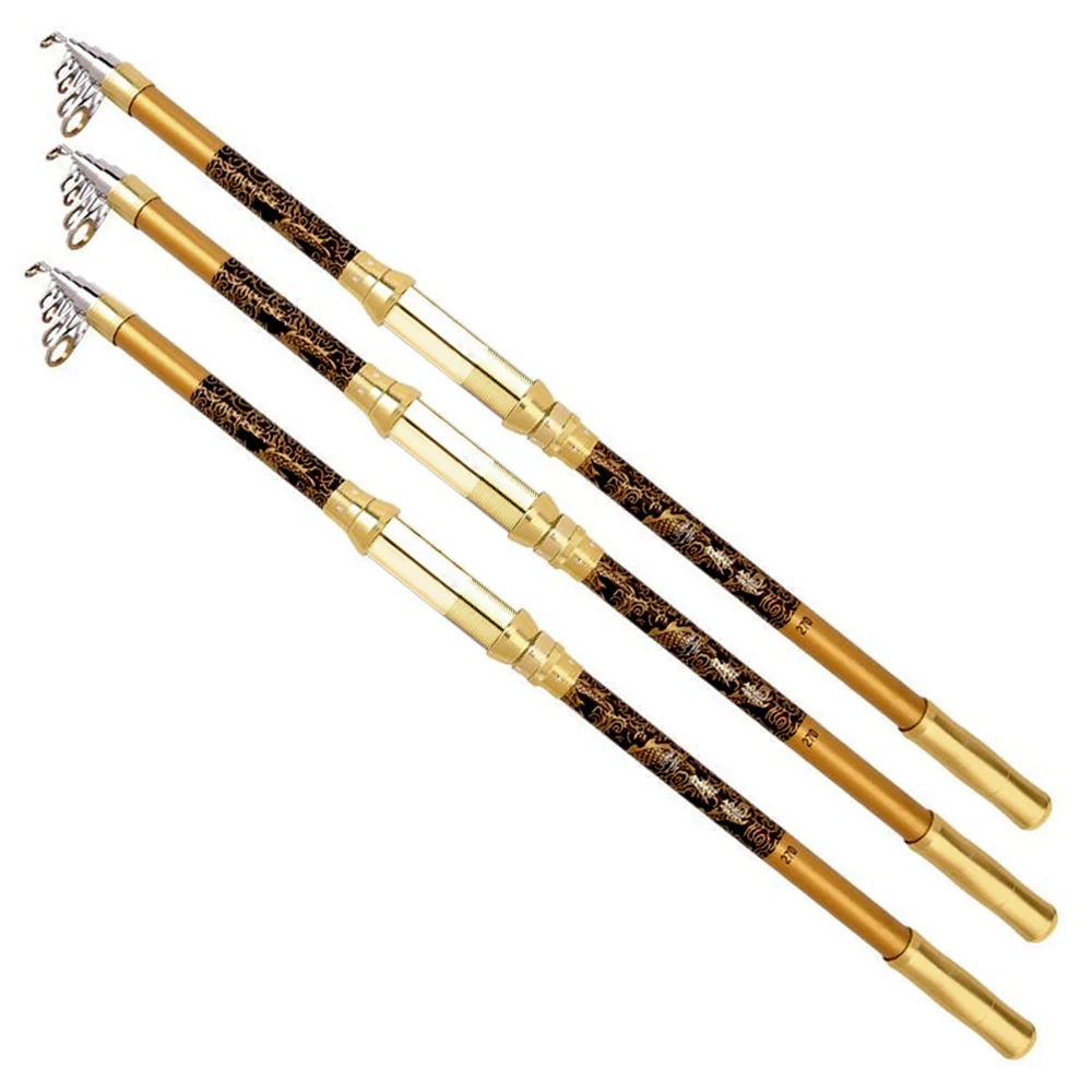 Color: doradoAdecuado para: Arroyo, río, lago, estanque de reservaPeces objetivo: carpa, besugo, tilapia y otros peces de agua dulceTamaño real Longitud abierta Secciones de longitud cerrada Diámetro superior Diámetro trasero Peso neto2,4 M 2,3 M 72CM 5 1,9 MM 19,9 MM 222G2,7 M 2,6 M 72CM 6 1,9 MM 21,4 MM 289G3,0 M 2,9 M 72CM 6 1,9 MM 21,4 MM 301G3,6 M 3,5 M 72CM 7 1,9 MM 25,1 MM 406GNOTA: Medición manual. Por favor, permita algunas diferencias menores.