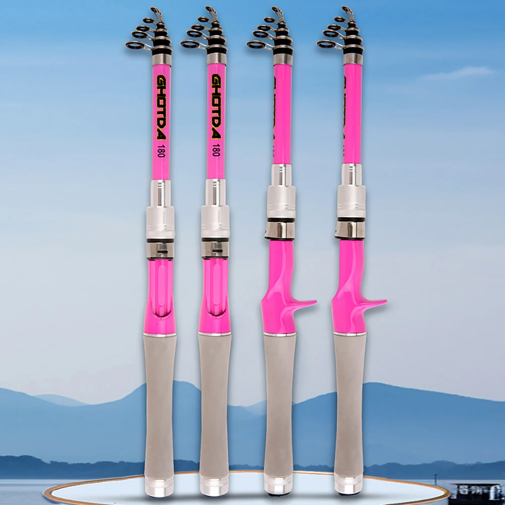 GHOTDA-caña de pescar de fibra de carbono, señuelo telescópico de 1,5 m, 1,8 m, 2,1 m, 2,4 m, 5/6/7/7 secciones, Mini equipo de pesca