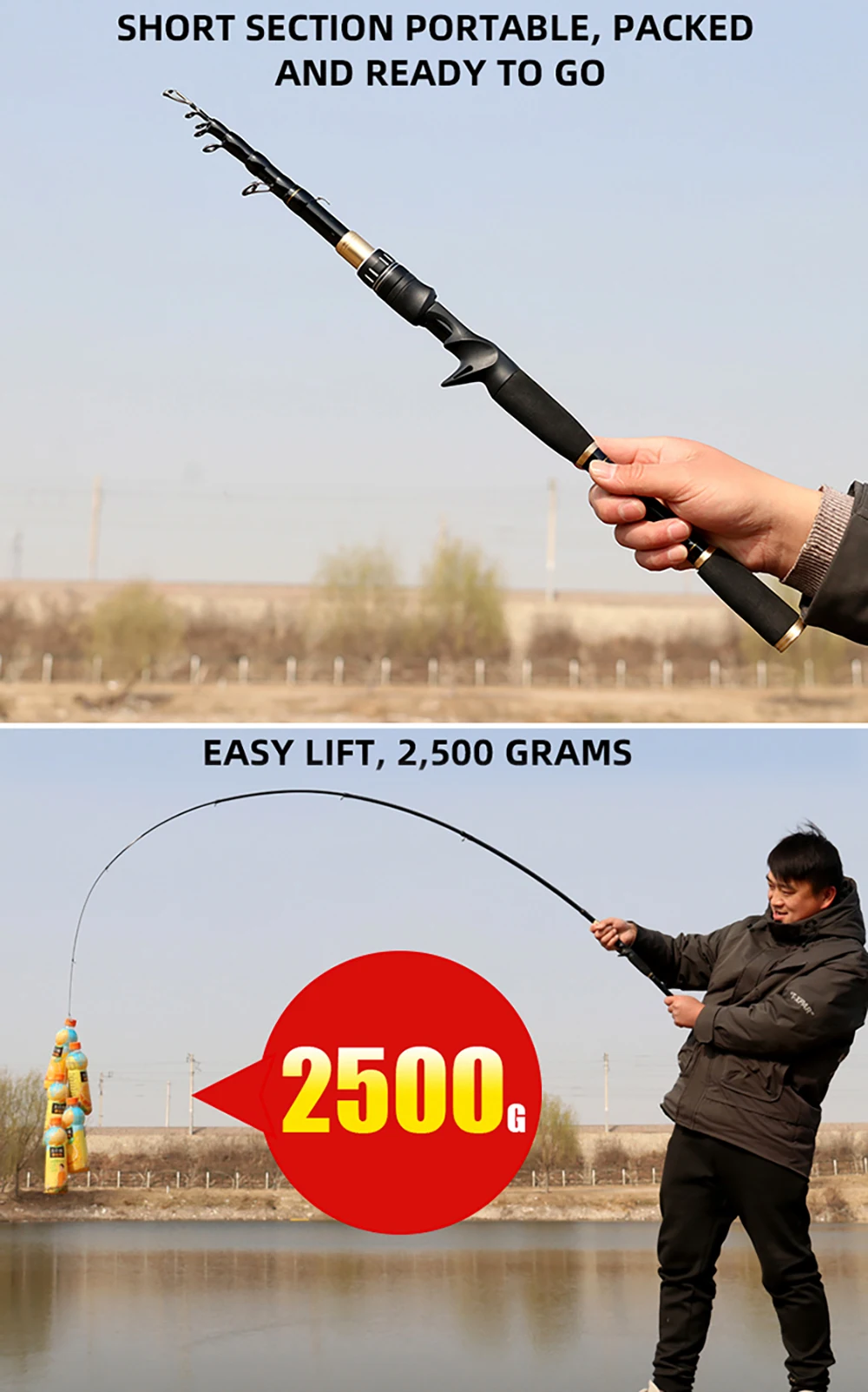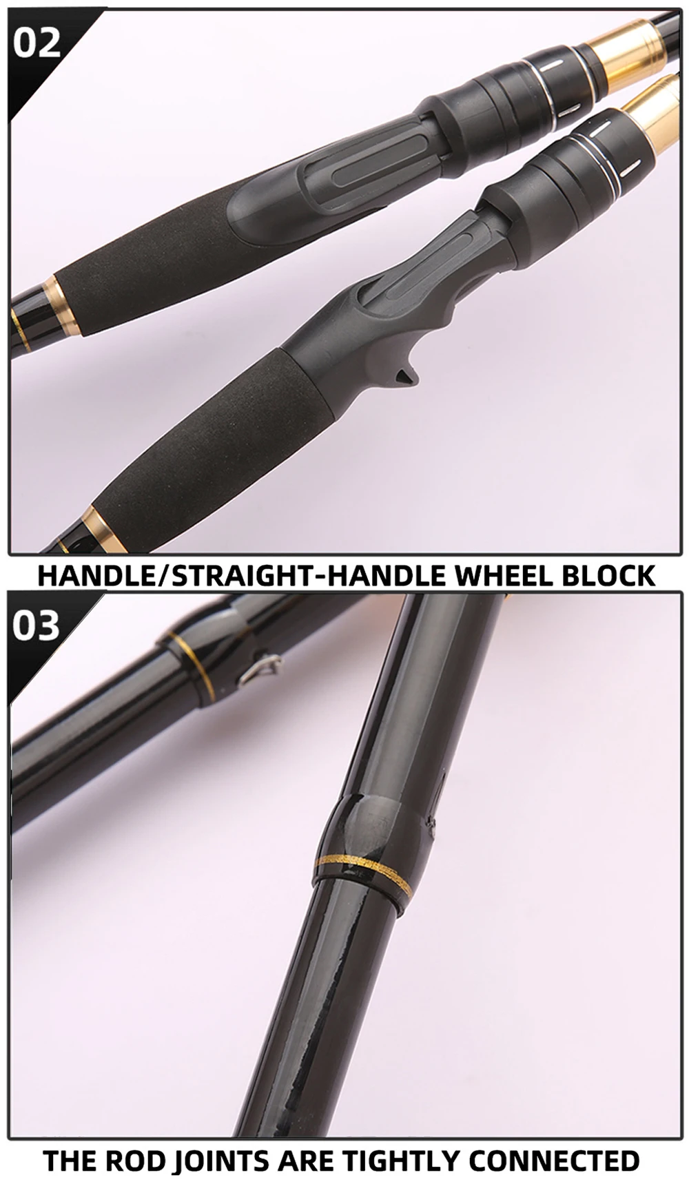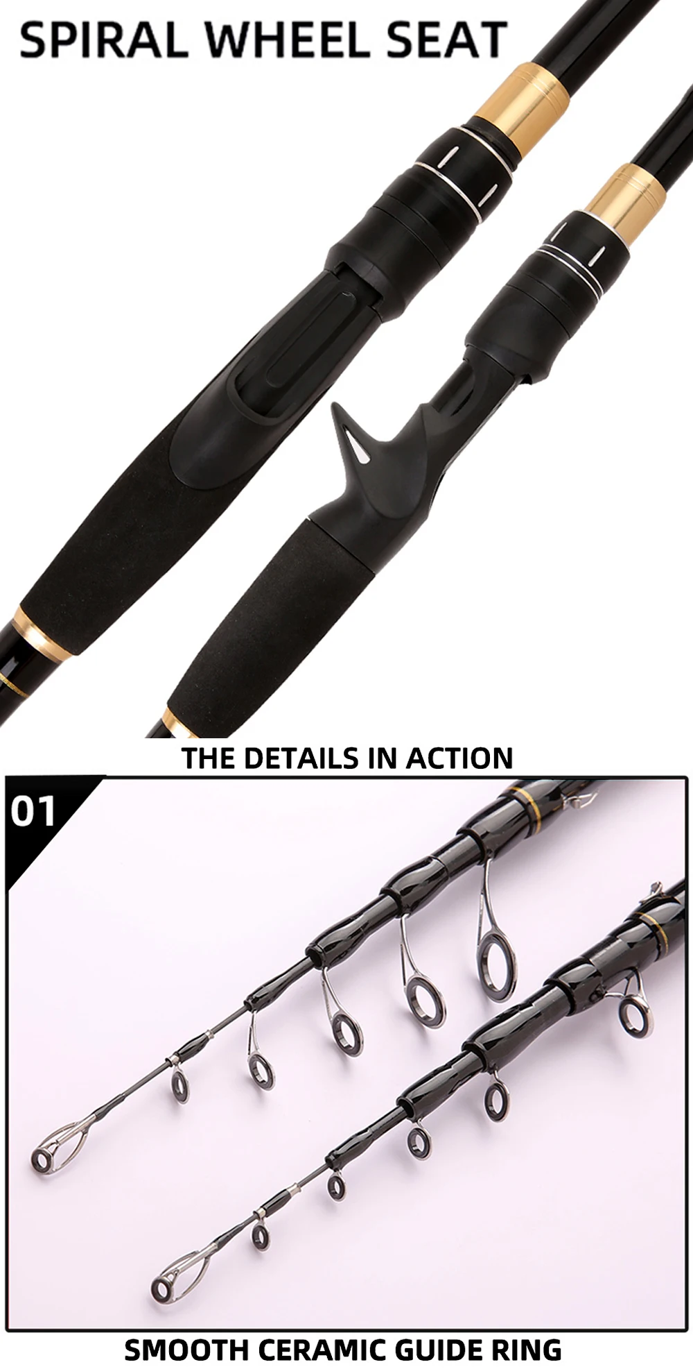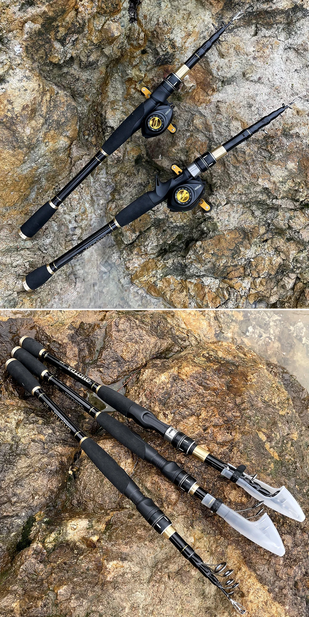 Caña de pescar de fibra de carbono y combos de carrete, caña de pescar giratoria de fundición portátil 17 + 1BB, juego de pesca de carrete Baitcasting